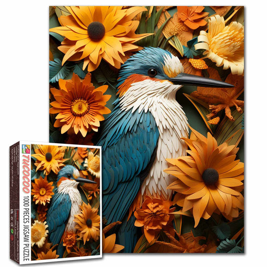 Vibrant Bloom Arrangement in Blue Vase Jigsaw Puzzle