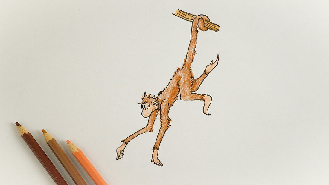 • Try sketching a monkey slipping on a banana peel or hiding bananas behind its back.