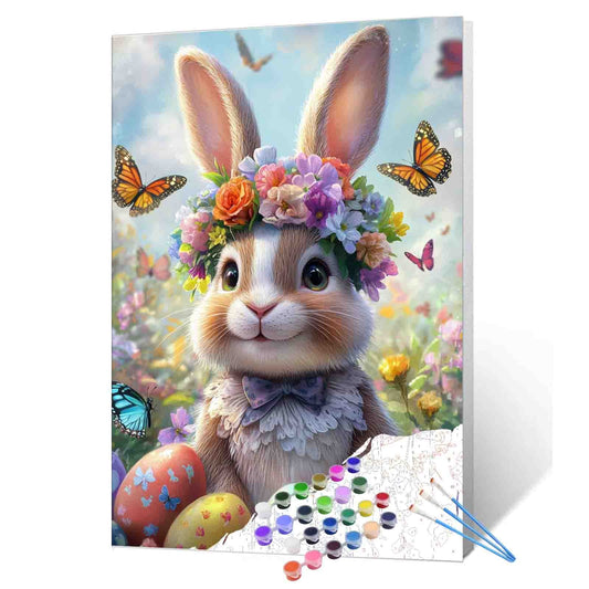 Smiling Bunny in Easter Meadow Paint by Numbers