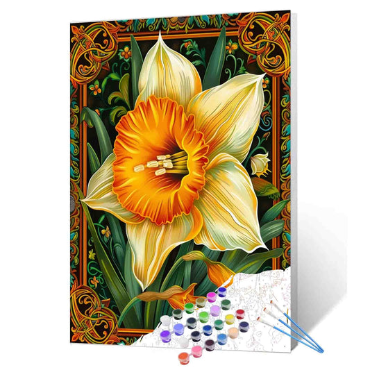 Golden Daffodils in Abstract Vase Paint by Numbers