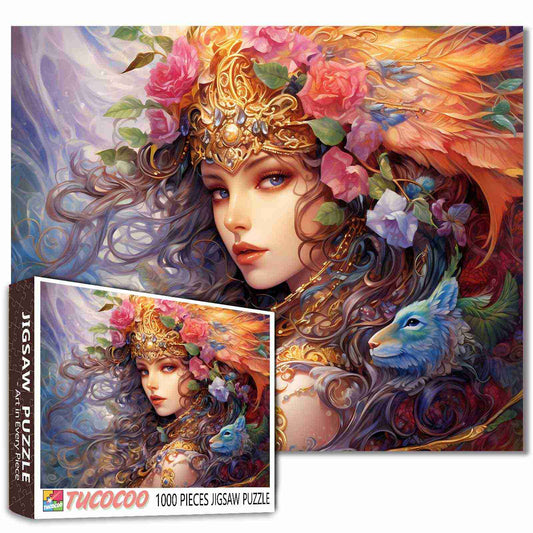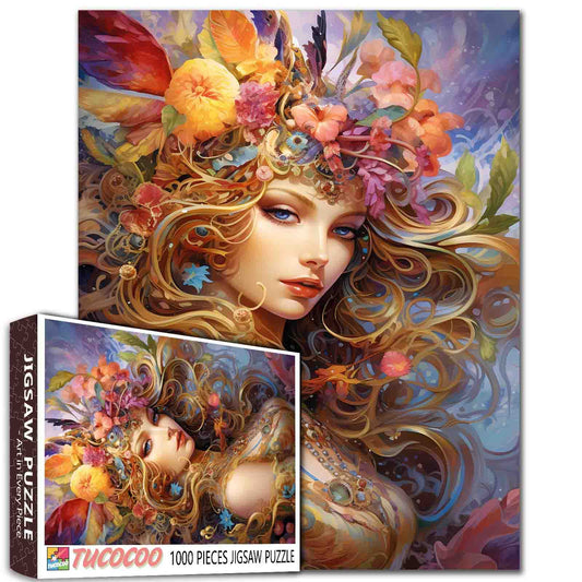 Mystische Feenkönigin mit Blumenkrone Puzzle