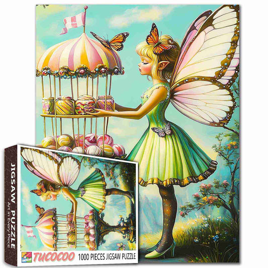Schmetterlingsfee in verzauberter Wiese Puzzle