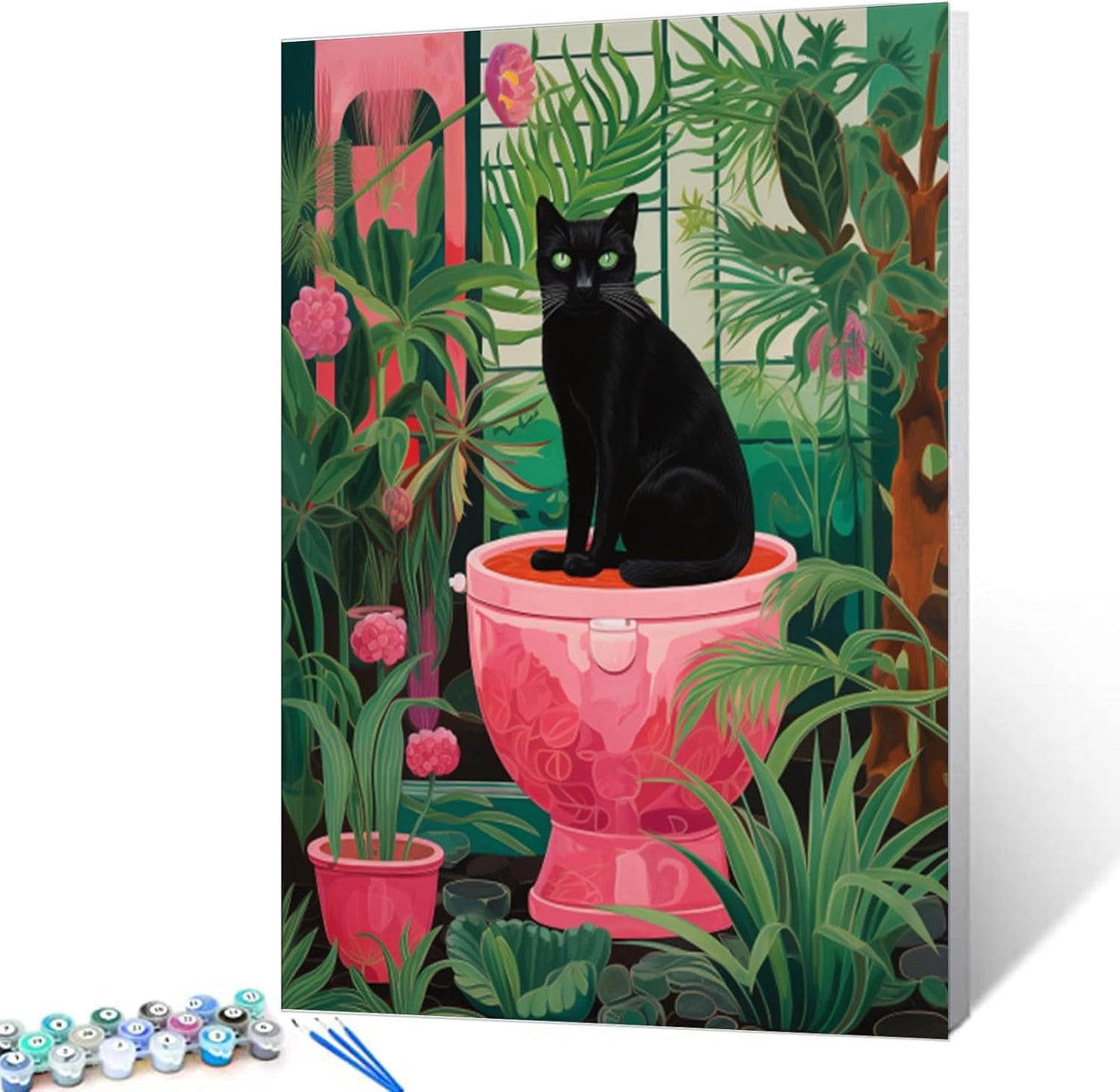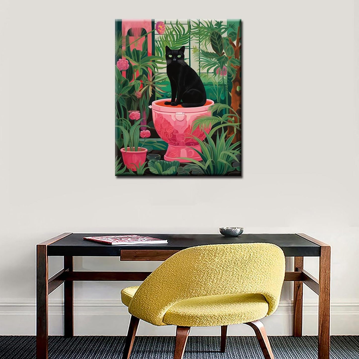 Schwarze Katze auf großem Blumentopf Malen nach Zahlen