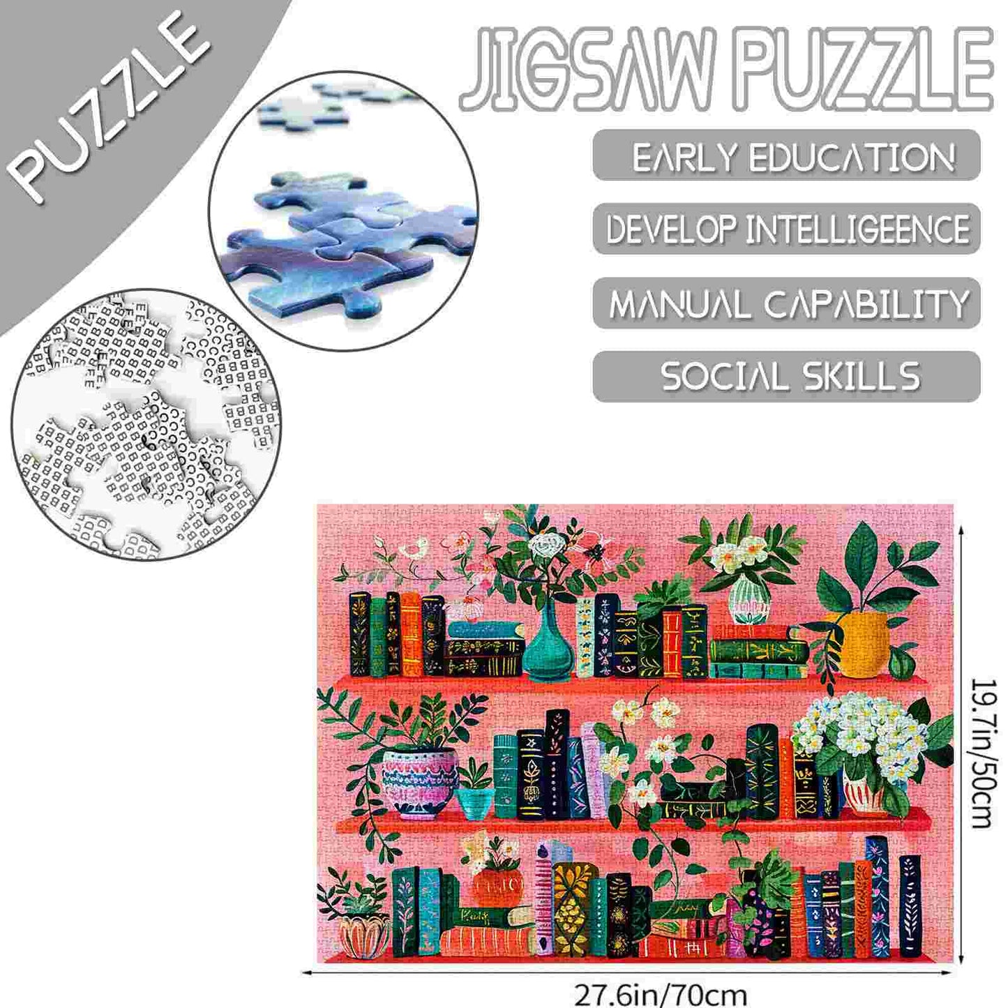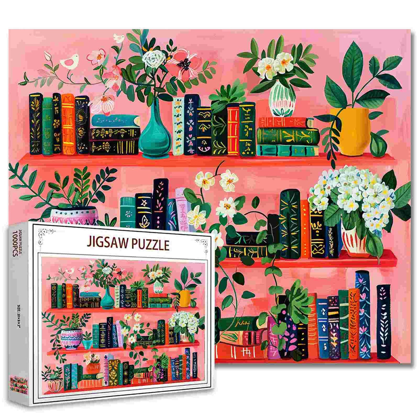 Tauchen Sie mit dem Bücherregal- und Blumenpuzzle in eine Welt der Literatur und Natur ein. Dieses lebendige 1000-teilige Puzzle zeigt ein wunderschön illustriertes Bücherregal, das mit Büchern, üppigem Grün und blühenden Blumen geschmückt ist. Dieses Design ist perfekt für Buchliebhaber und Puzzle-Enthusiasten und bringt Charme und Entspannung in Ihre Freizeit. Jedes Teil ist präzise gefertigt und passt perfekt, sodass der Zusammenbau genauso viel Spaß macht wie das Ergebnis. Stellen Sie es als Wandkunst aus oder schenken Sie es jemandem, der eine gemütliche Leseecke zu schätzen weiß.