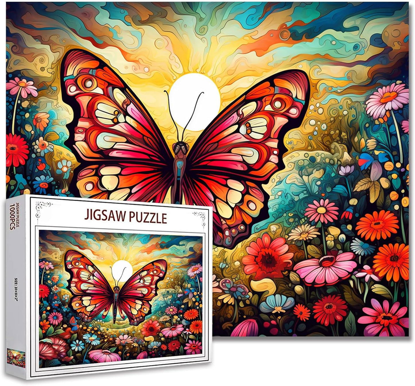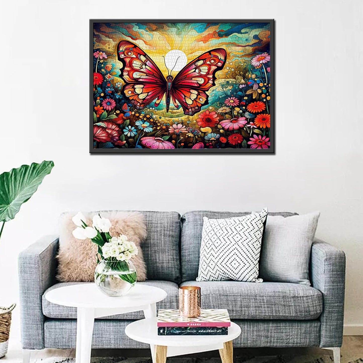 Schmetterling Blumen Sonne Retro Abstrakt Puzzle