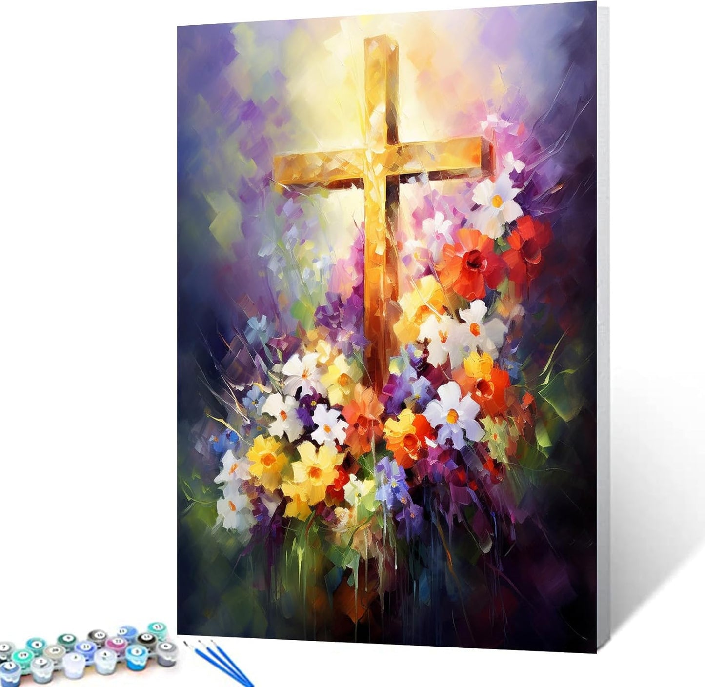 Dieses Malen-nach-Zahlen-Set zeigt eine atemberaubende Darstellung eines goldenen Kreuzes, umgeben von einer lebhaften Palette bunter Blumen. Das Kreuz symbolisiert Hoffnung und Glauben, während die Blumen Freude und Erneuerung darstellen. Dieses Stück ist perfekt für alle, die ein beruhigendes und inspirierendes Kunstwerk suchen. Die lebhaften Farben und komplizierten Details verleihen Ihrem Zuhause einen Hauch von Schönheit und Gelassenheit. Entfesseln Sie den Künstler in sich und schaffen Sie mit diesem Malen-nach-Zahlen-Set ein Meisterwerk.