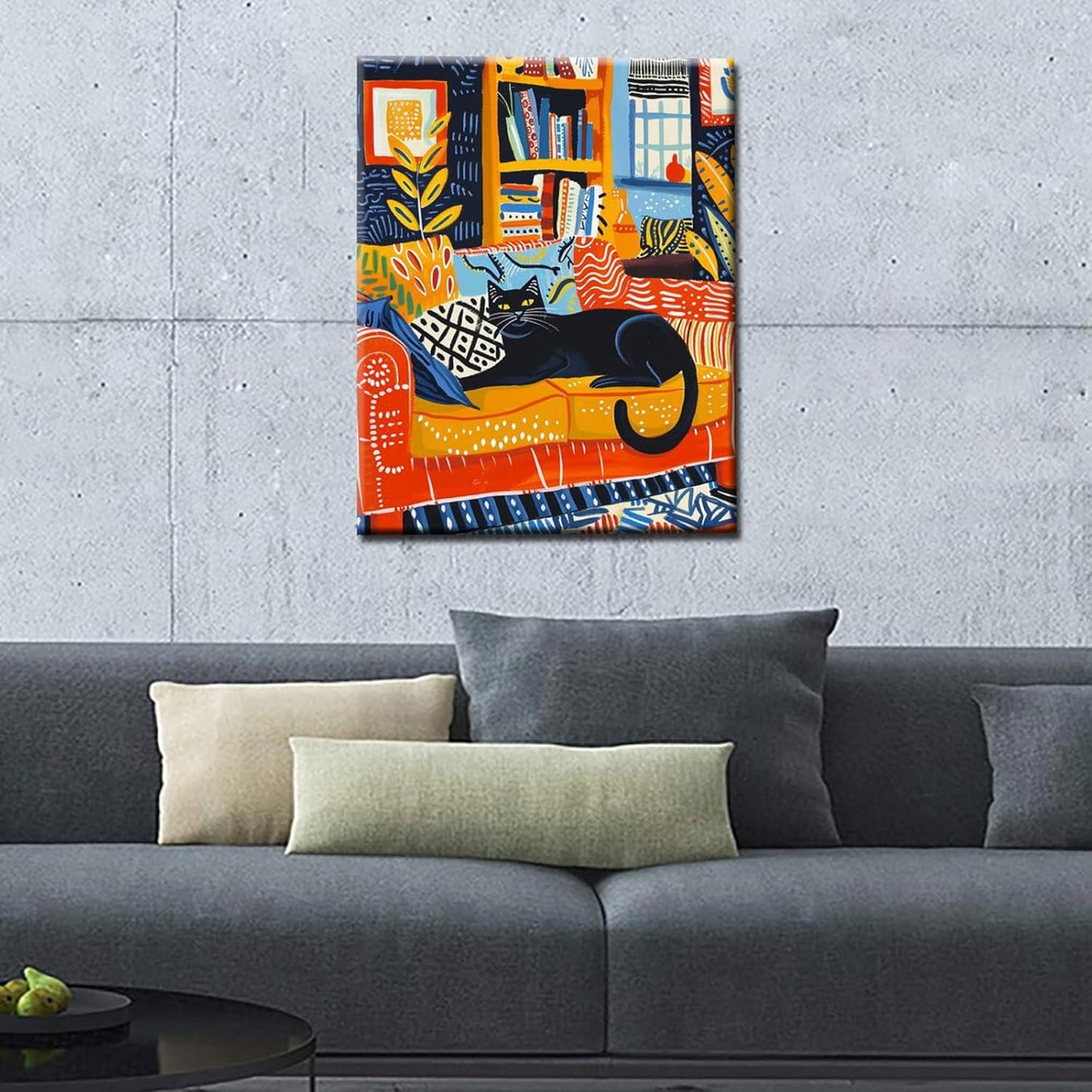 Süße schwarze Katze sitzt auf dem Sofa Malen nach Zahlen