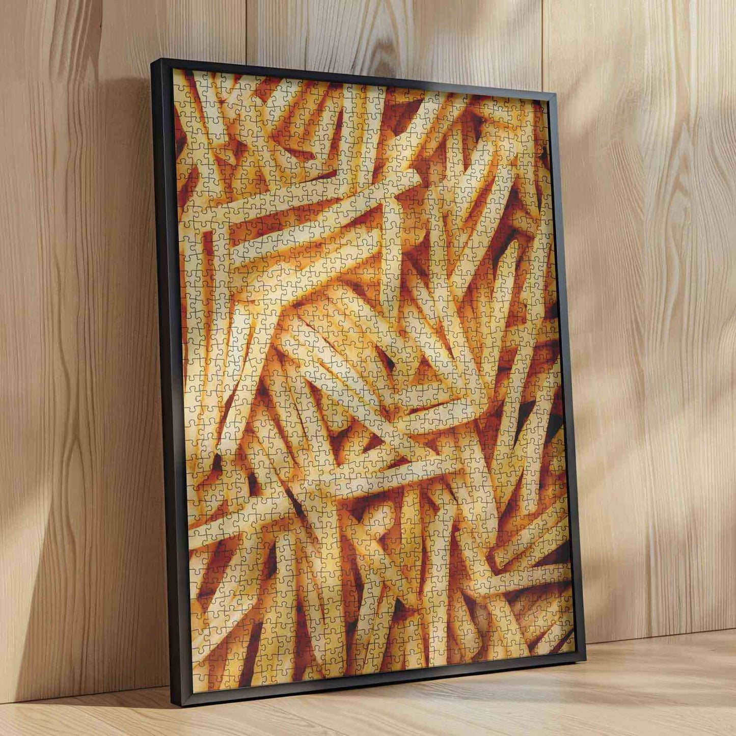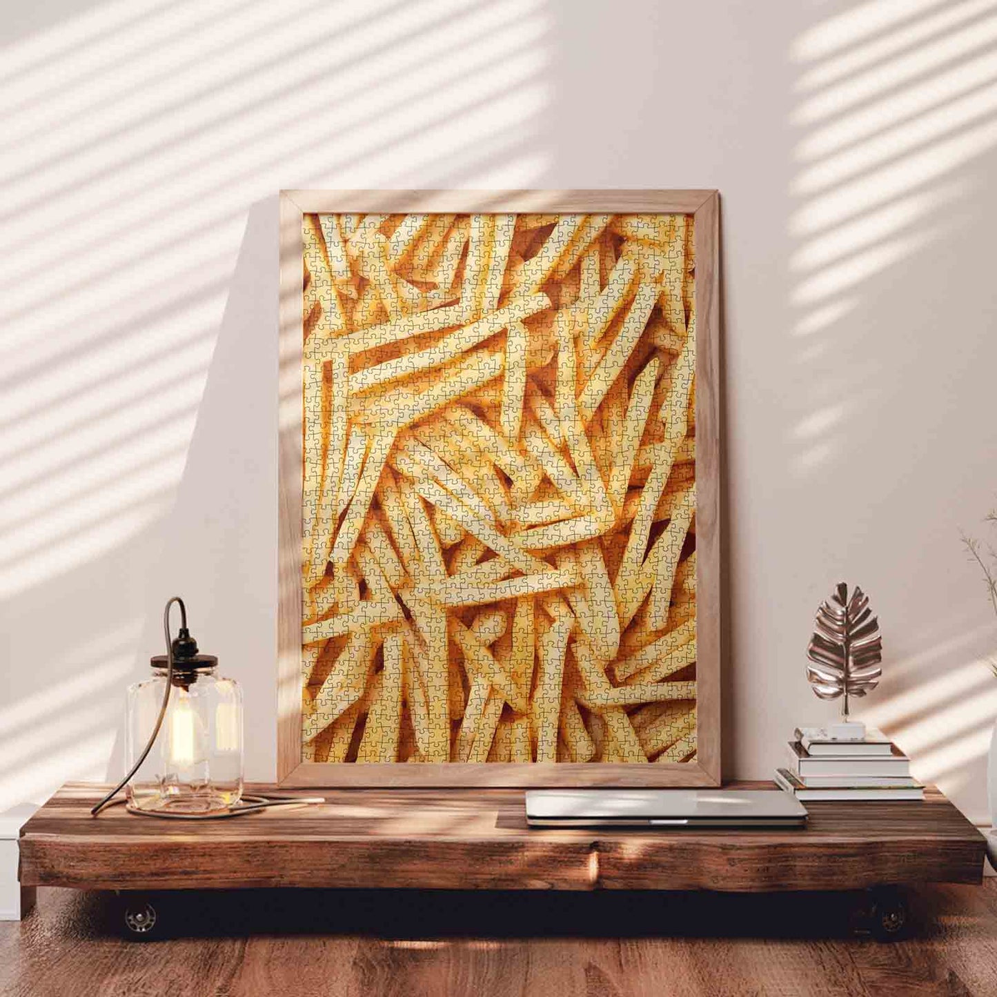Tauchen Sie mit den Golden French Fries Jigsaw Puzzles in knusprige Perfektion ein. Mit einer entzückenden Nahaufnahme von goldenen, frisch zubereiteten Pommes ist dieses Puzzle eine lustige und köstliche Ergänzung für Ihre Sammlung und Einrichtung.