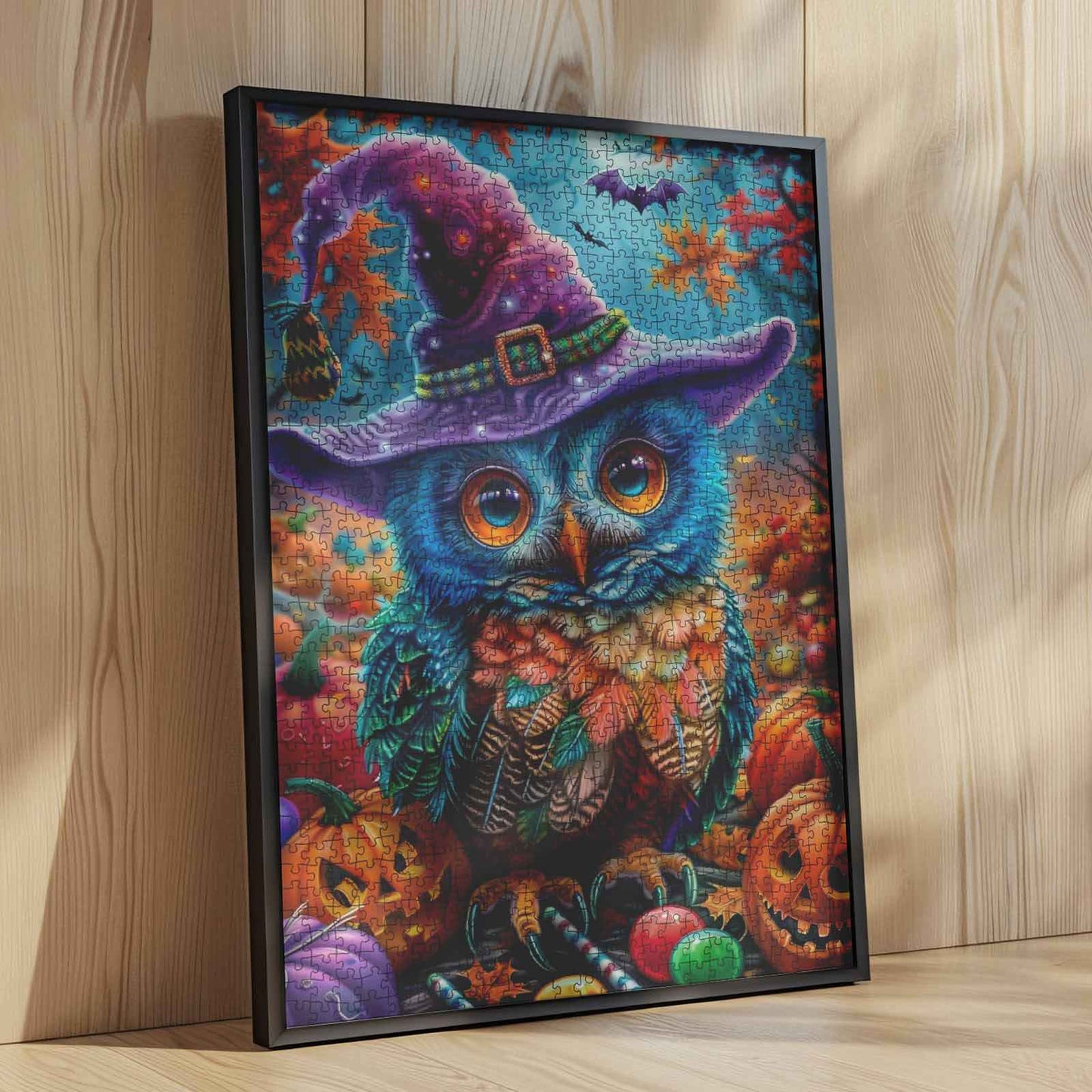 Halloween Bunte Eule Retro Kürbis Puzzle
