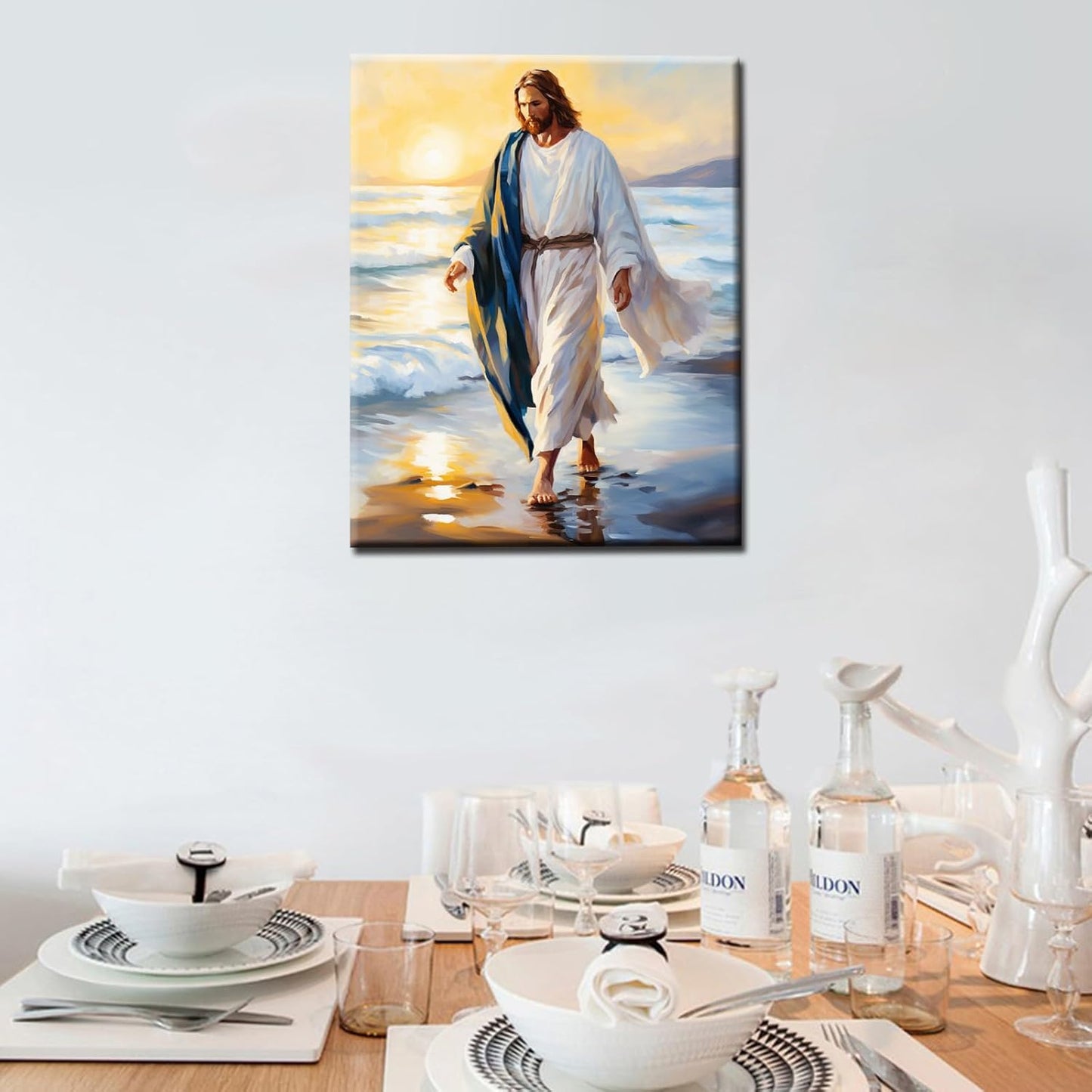 Bringen Sie mit diesem wunderschönen Jesus-Malen-nach-Zahlen-Set Frieden und Gelassenheit in Ihr Zuhause. Das Bild zeigt Jesus, wie er bei Sonnenuntergang am Strand entlanggeht, eine kraftvolle und bewegende Szene, die sicherlich inspirieren wird. Mit jedem Pinselstrich fühlen Sie sich Ihrem Glauben näher, was dieses Set zum perfekten Geschenk für Sie selbst oder einen geliebten Menschen macht.