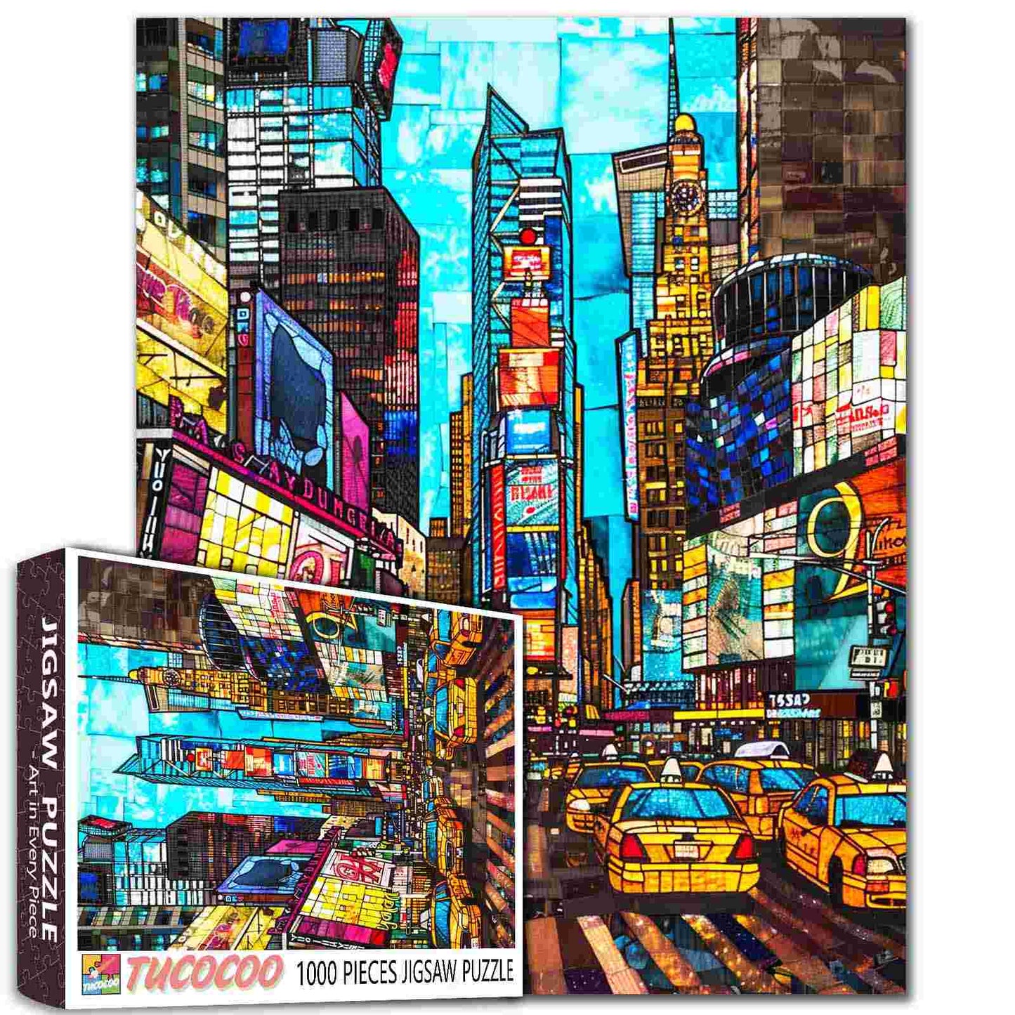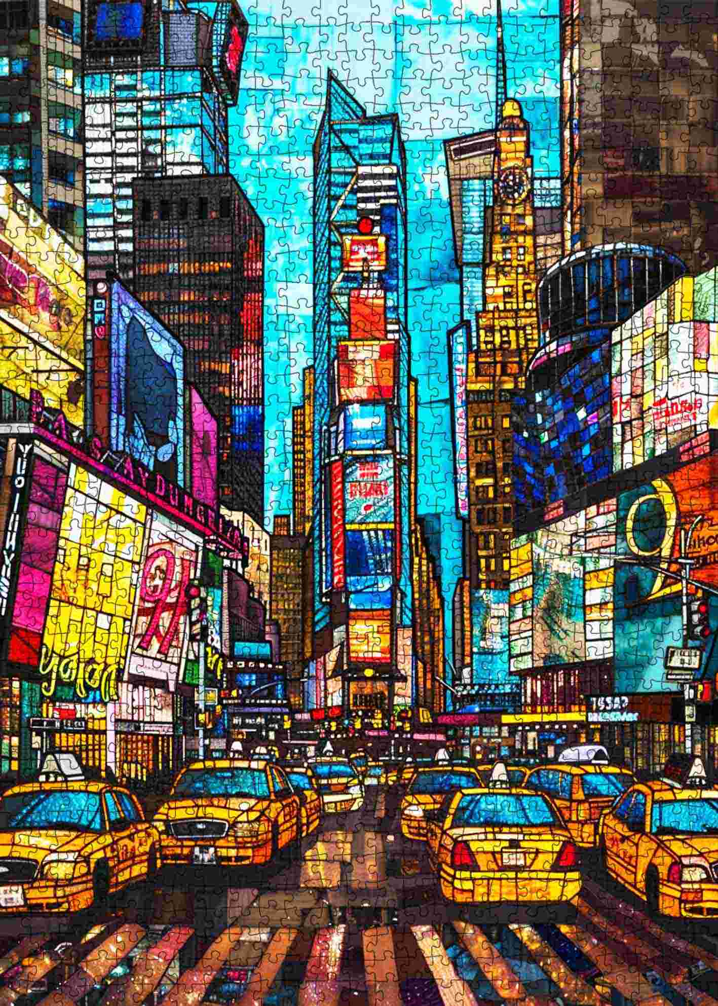 Buntglas-Puzzle mit Blick auf die Stadt Manhattan