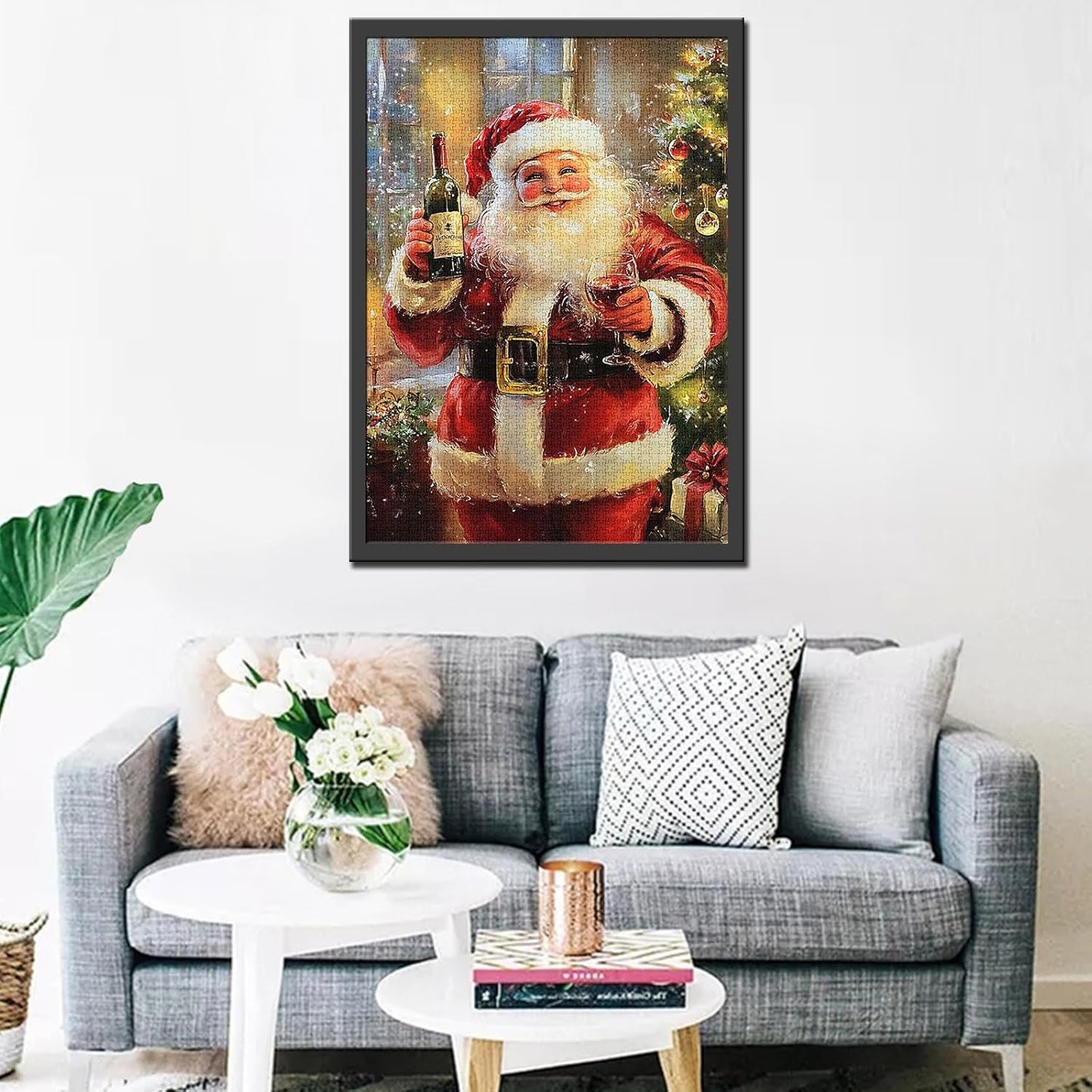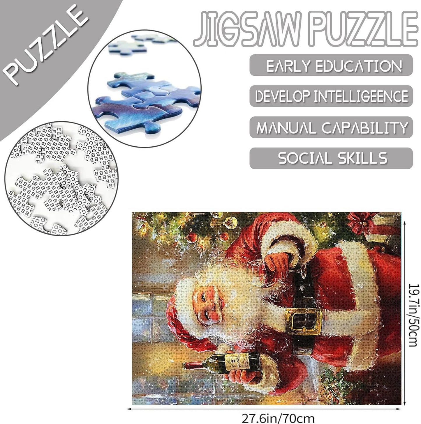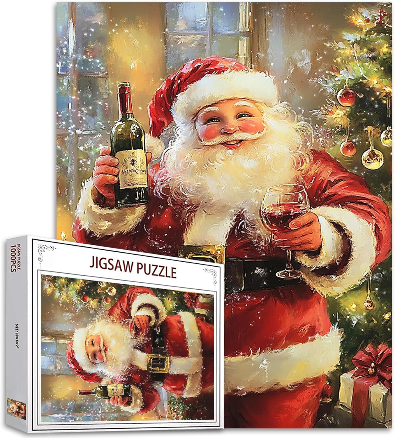 - Dieses festliche Puzzle zeigt einen fröhlichen Weihnachtsmann, der ein Glas Wein neben einem wunderschön geschmückten Weihnachtsbaum genießt. Es ist ein lustiges und herausforderndes Puzzle, das Weihnachtsstimmung in Ihr Zuhause bringt. Nach der Fertigstellung ist es ein bezauberndes Dekorationsstück für die Saison!