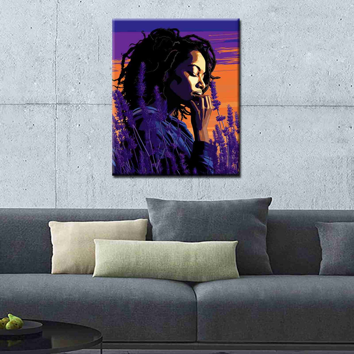 Produktbeschreibung: Tauchen Sie mit diesem bezaubernden Malen-nach-Zahlen-Set in die ruhige Schönheit einer schwarzen Frau in einem Lavendelfeld bei Sonnenuntergang ein. Lassen Sie sich von den lebendigen Farben und der friedlichen Szene auf Ihrer künstlerischen Reise inspirieren.