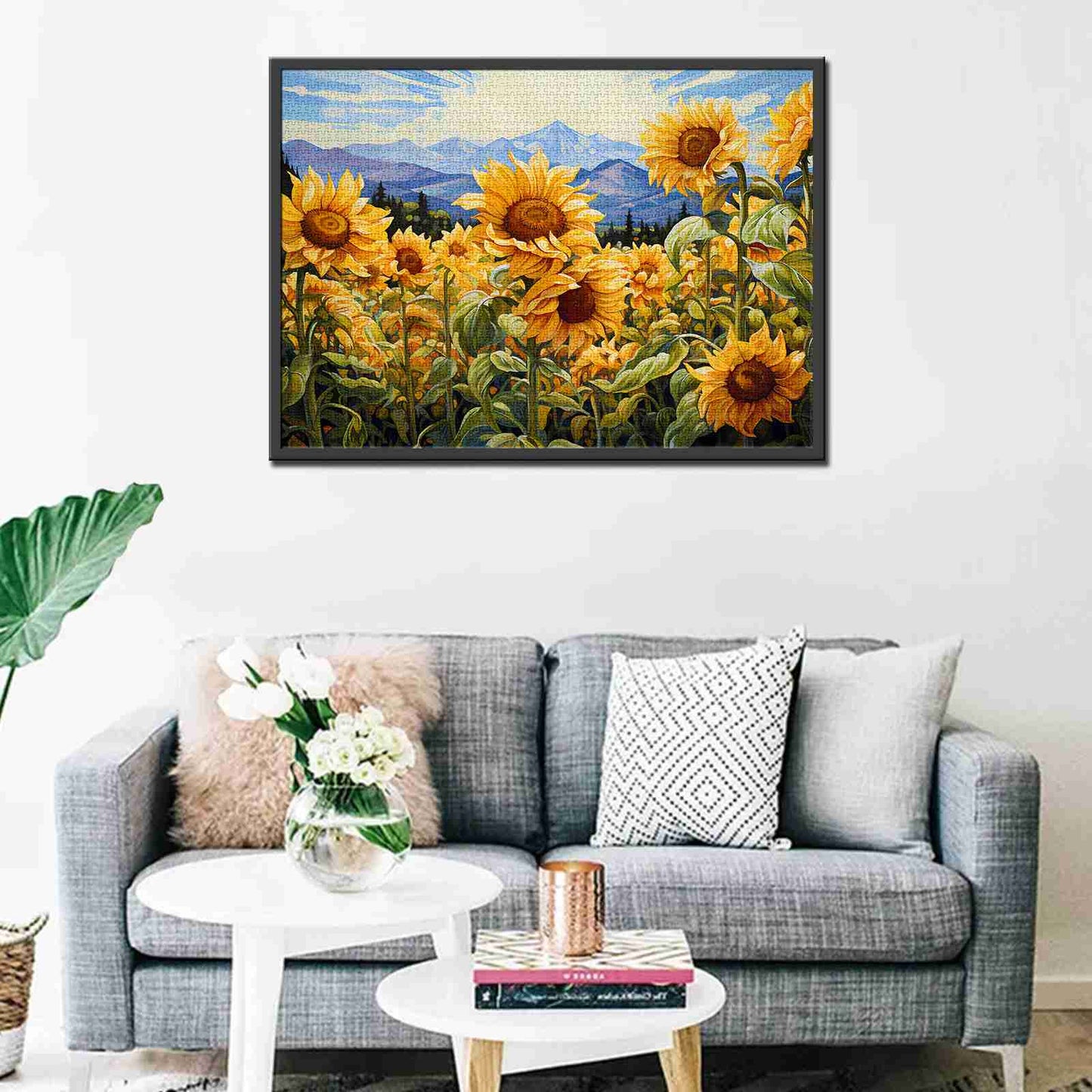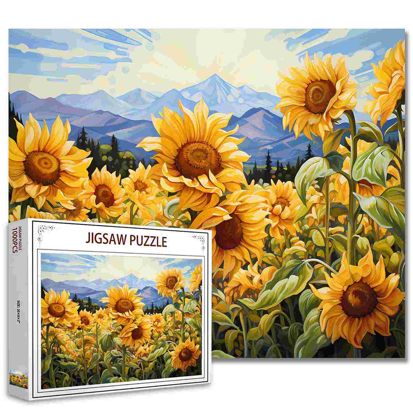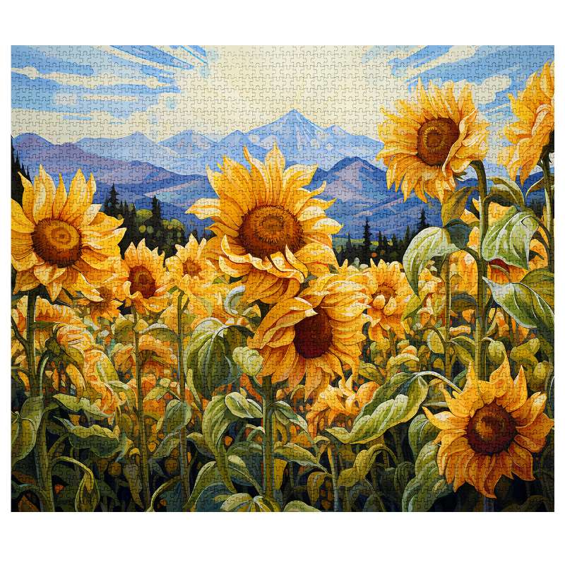 Entfliehen Sie in ein wunderschönes Sonnenblumenfeld! Dieses atemberaubende Puzzle zeigt eine lebendige Landschaft aus Sonnenblumen, die in den Himmel ragen, mit majestätischen Bergen in der Ferne. Dieses 1000-teilige Puzzle ist perfekt für einen entspannten Nachmittag und wird Sie herausfordern und begeistern, während Sie diese wunderschöne Szene zusammensetzen. Genießen Sie den Prozess der Schaffung Ihres eigenen Kunstwerks!