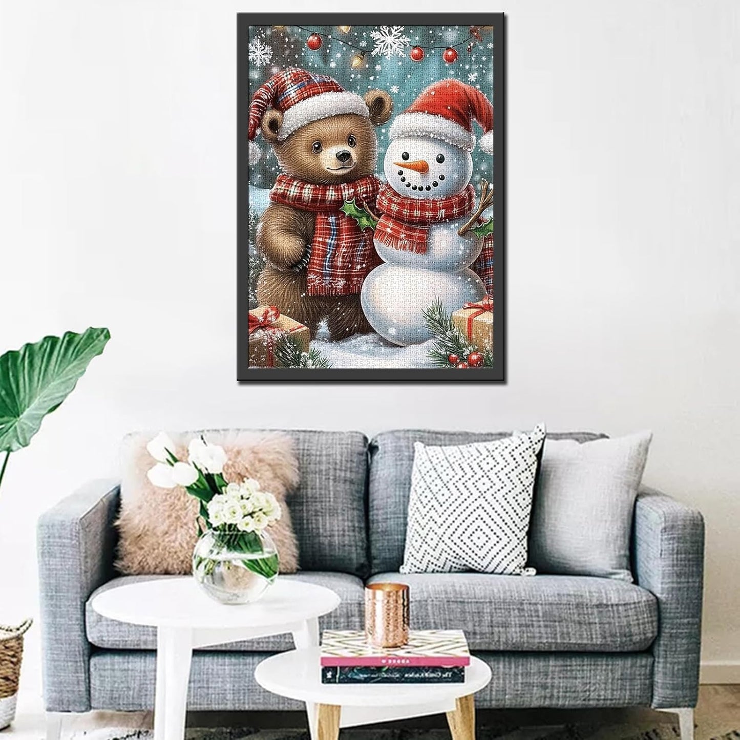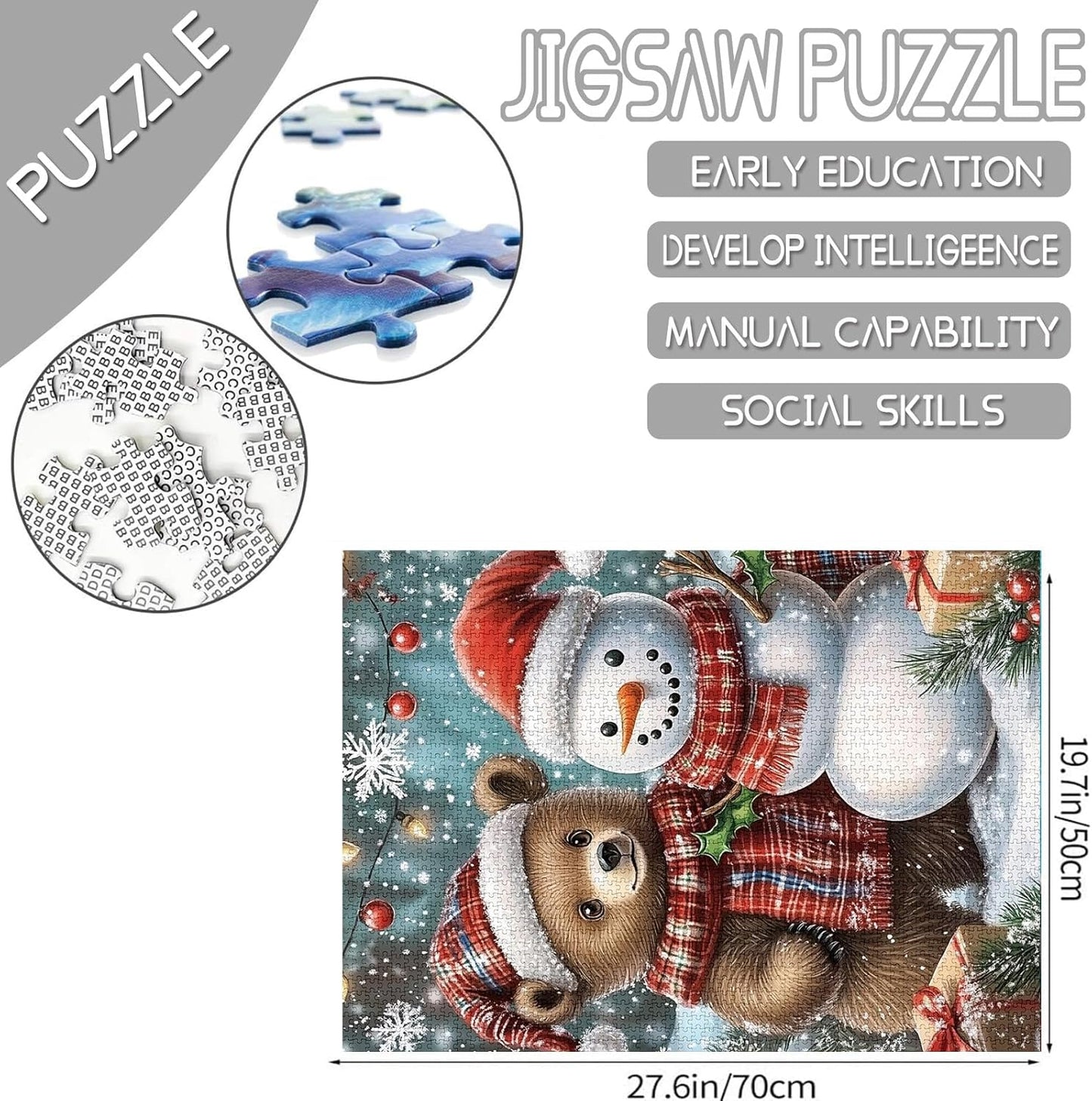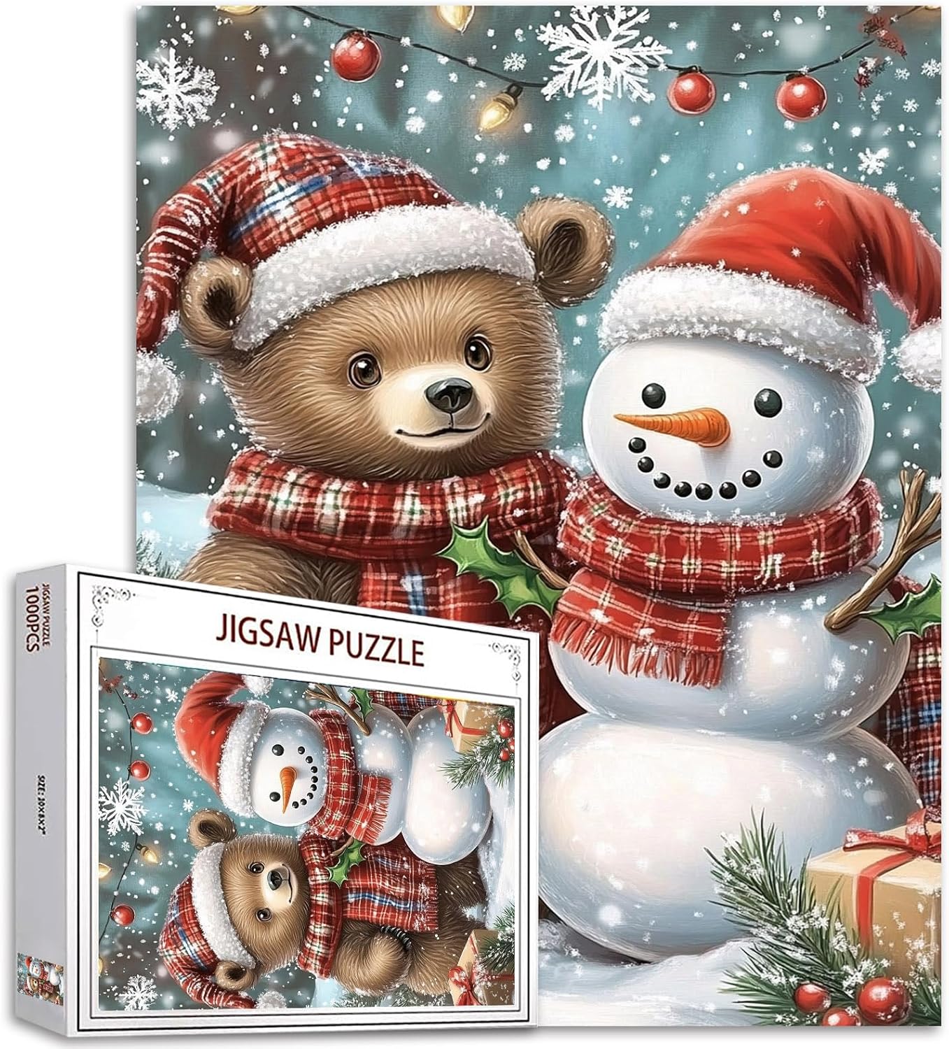 - Bringen Sie mit diesem bezaubernden Puzzle den Zauber von Weihnachten in Ihr Zuhause. Ein süßer Bär und ein freundlicher Schneemann stehen Seite an Seite in einem verschneiten Winterwunderland, umgeben von funkelnden Lichtern und festlichen Geschenken. Diese herzerwärmende Szene ist perfekt für Familienspaß und eine gemütliche Feiertagsstimmung.