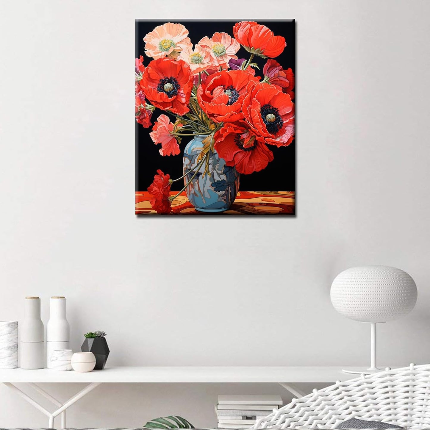 Tucocoo Red Poppys DIY Malen nach Zahlen für Erwachsene, rote Blumen in einer Vase