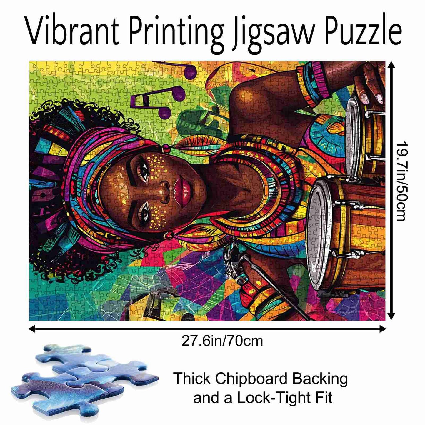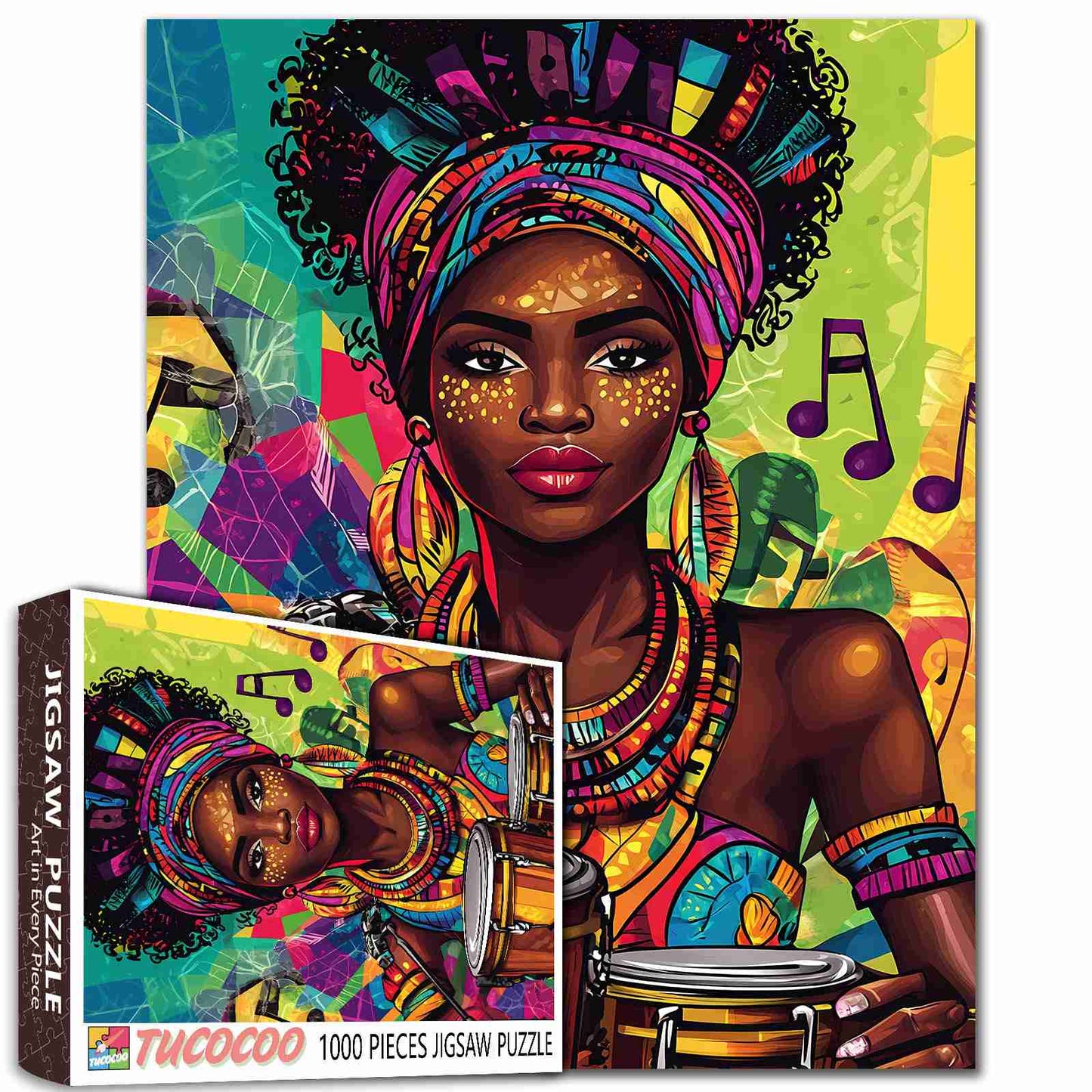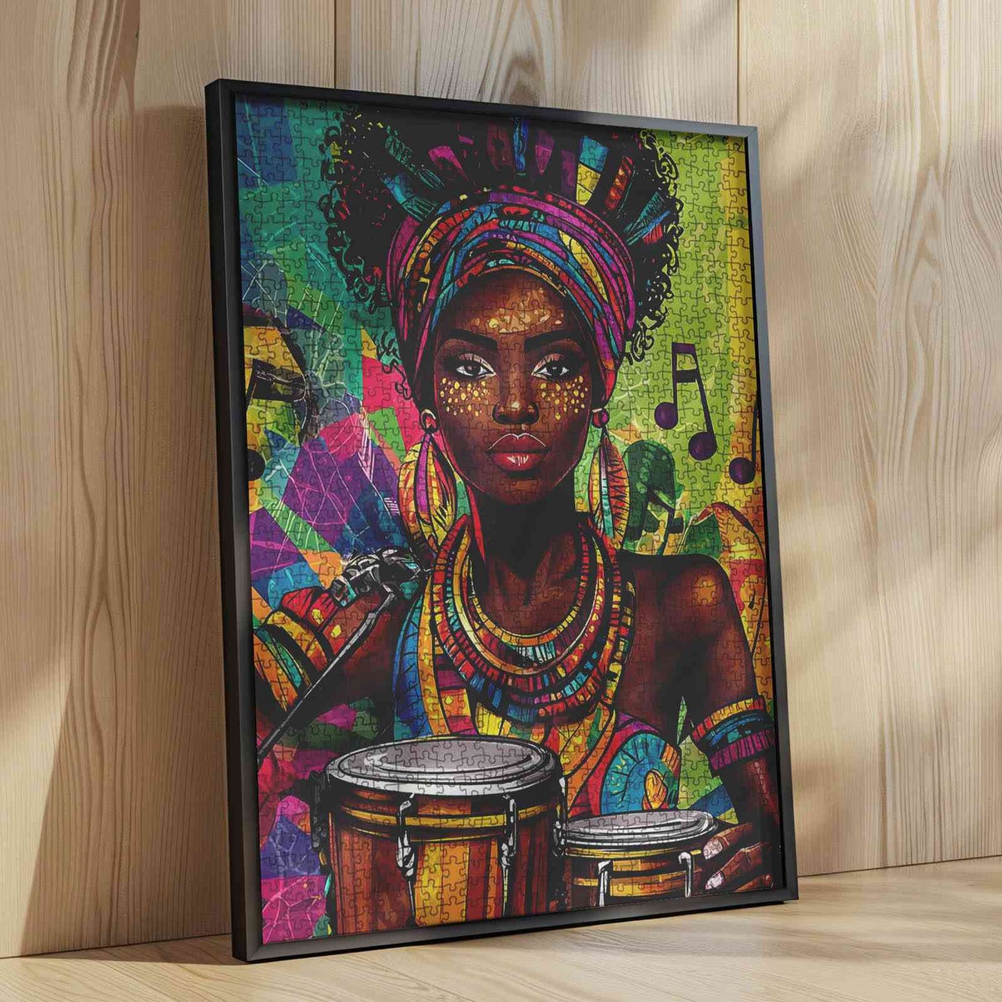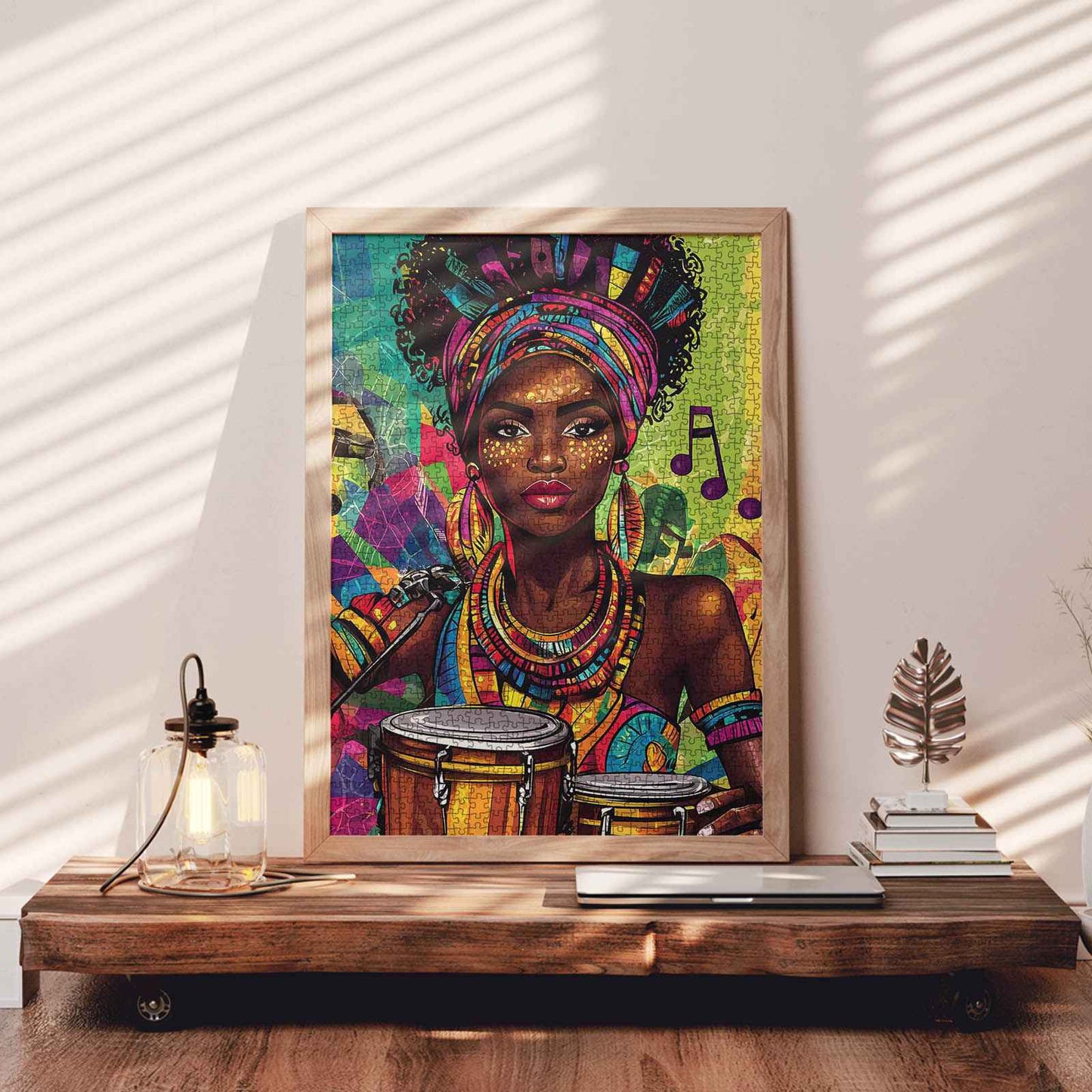 Feiern Sie den Rhythmus und die Kultur Afrikas mit diesem lebendigen Puzzle mit einer atemberaubenden afrikanischen Trommlerin. Mit ihrer farbenfrohen traditionellen Kleidung, ihrem strahlenden Kopftuch und ihrer energischen Pose verkörpert sie den lebendigen Geist afrikanischer Musik. Dieses Puzzle ist eine reizvolle Mischung aus künstlerischem Ausdruck und kultureller Wertschätzung, perfekt für Puzzle-Enthusiasten und Kunstliebhaber gleichermaßen.