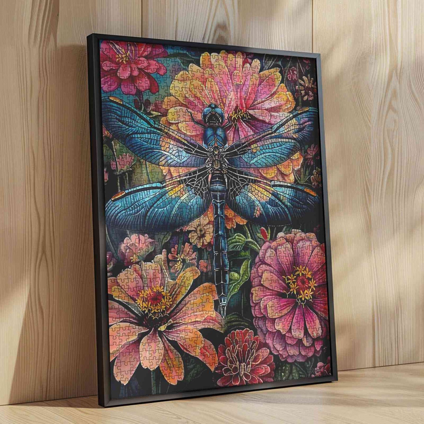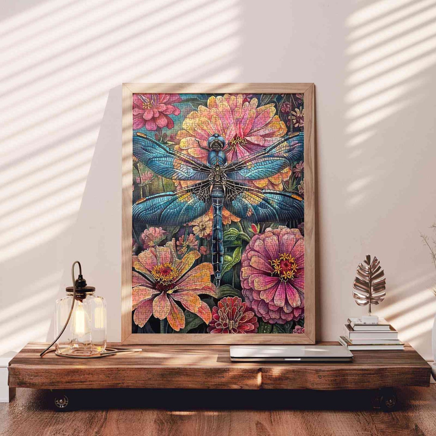 Erleben Sie die zarte Schönheit der Natur mit unserem Puzzle „Lebendiger Libellengarten“. Dieses bezaubernde 1000-teilige Puzzle zeigt eine atemberaubende blaue Libelle, die zart auf leuchtend rosa Blüten thront. Die satten, satten Farben der Flora und die komplizierten Details der Libellenflügel ergeben ein lebendiges Tableau, das sowohl fesselnd als auch herausfordernd zusammenzusetzen ist. Dieses Puzzle ist perfekt für Naturliebhaber und Puzzle-Enthusiasten und bringt die Ruhe und Schönheit eines blühenden Gartens direkt in Ihr Zuhause.