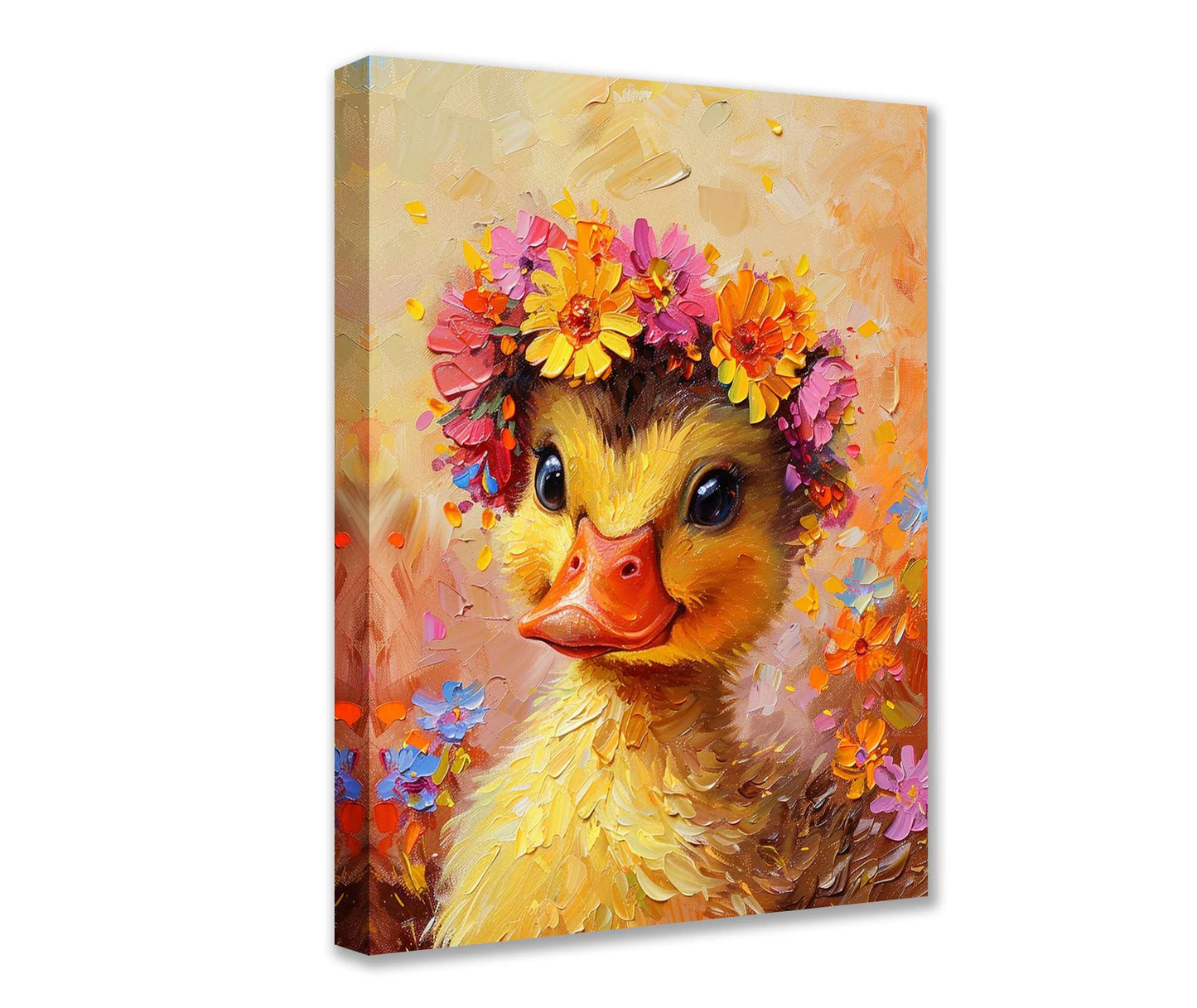 Erleben Sie einen wunderlichen Moment, wenn dieses fröhliche Entlein unter einer leuchtenden Blumenkrone strahlt. Seine hellen, neugierigen Augen und sonnigen Farbtöne bringen Freude und Wärme in jeden Raum. Stellen Sie sich den Charme vor, den es Ihrer Inneneinrichtung verleiht – perfekt, um Gespräche anzuregen und die Stimmung zu heben. Spüren Sie nicht, wie sein Glück Sie ausstrahlt?