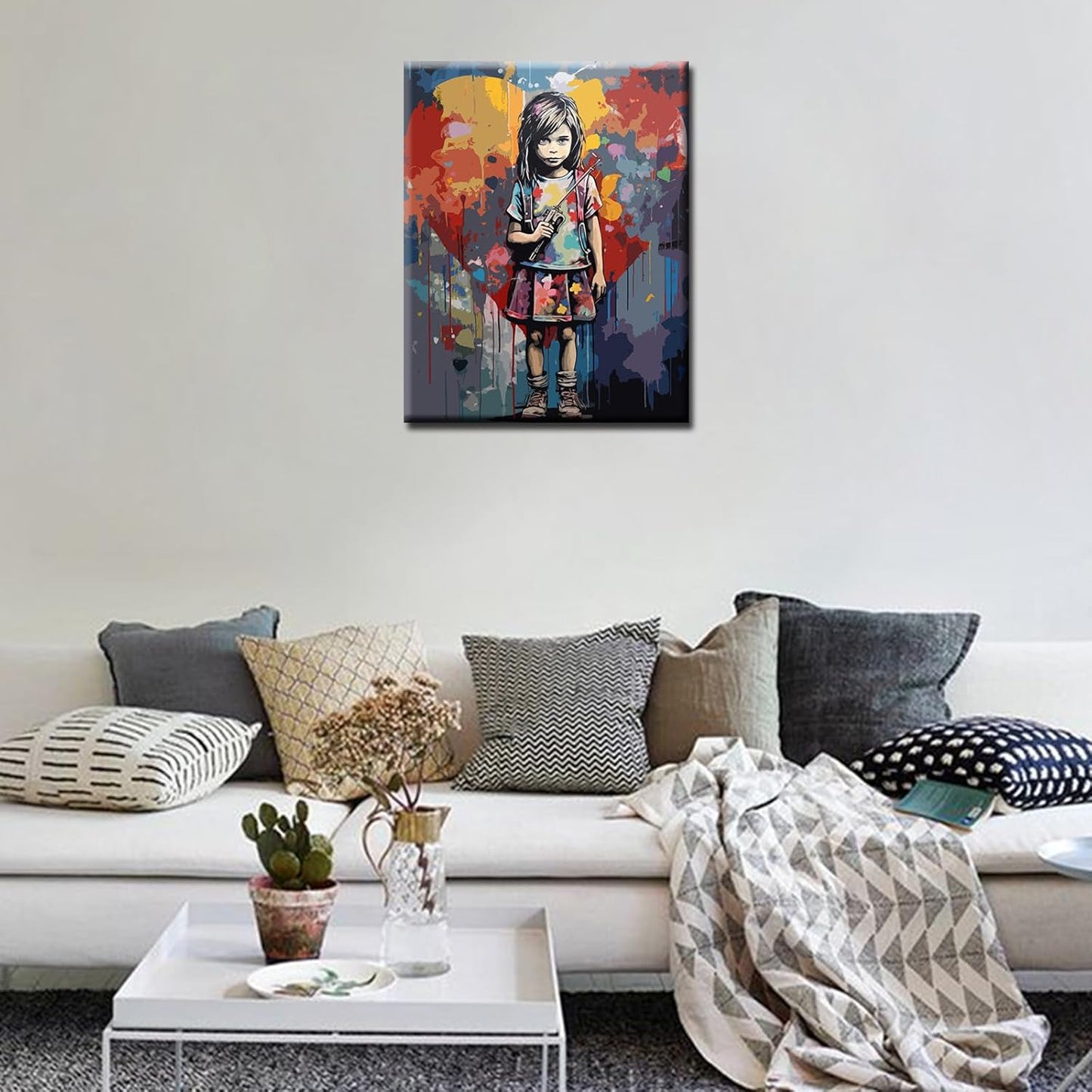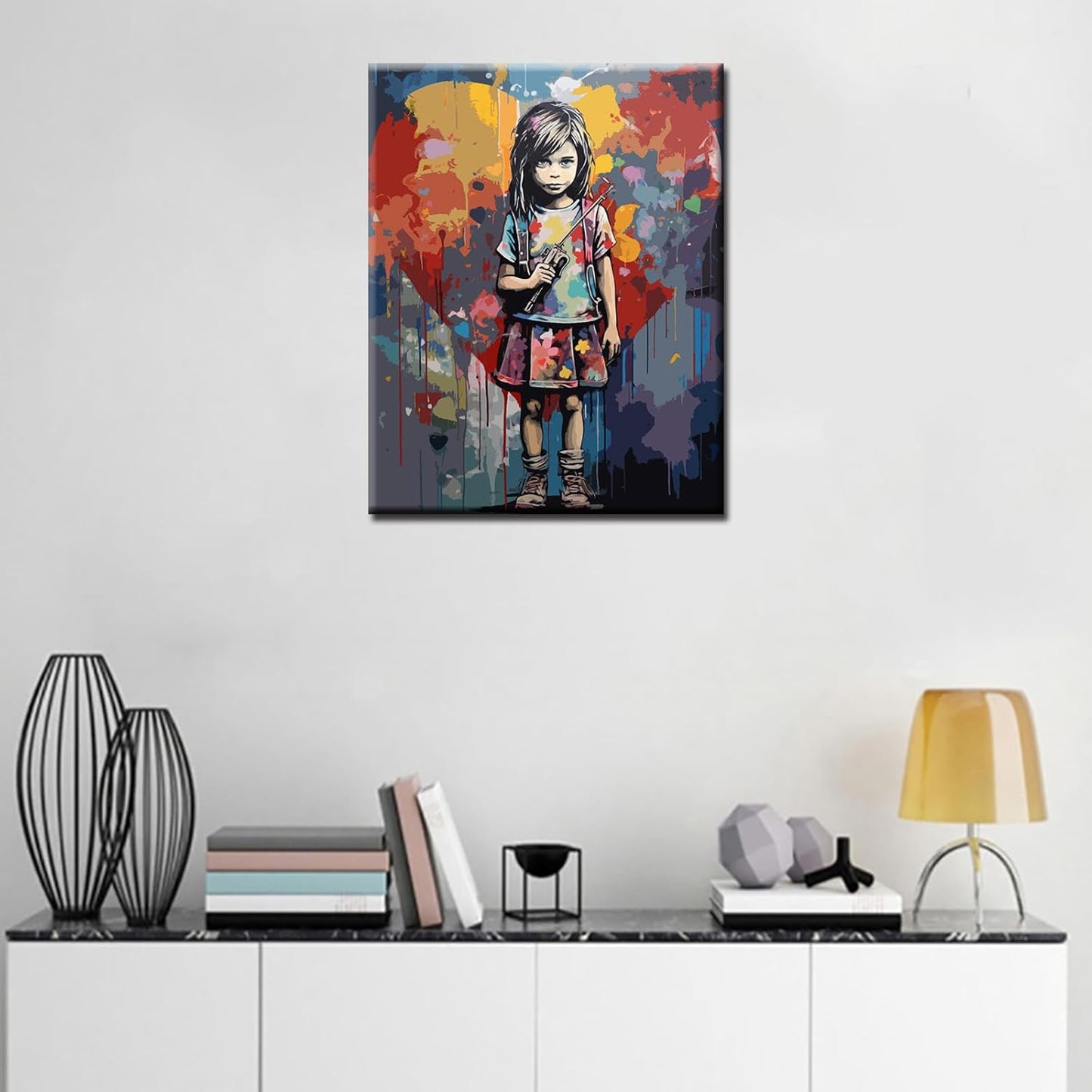 Süßes kleines Mädchen und Graffiti-Herz Malen nach Zahlen