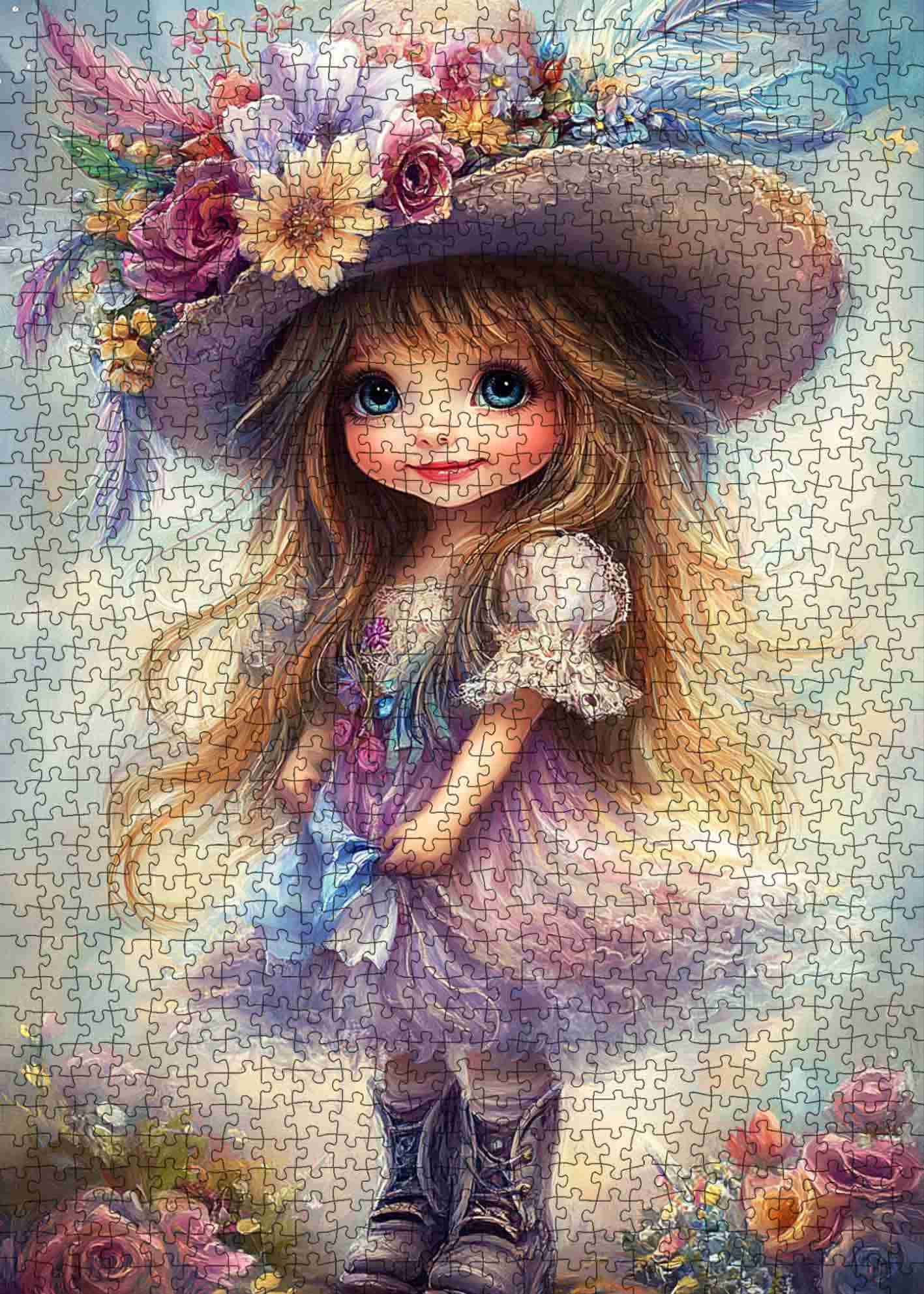 Dieses wunderschöne Puzzle zeigt eine zarte Puppe, die mit rosa Rosen geschmückt ist und ein ruhiges und künstlerisches Design bietet. Perfekt für Puzzle-Enthusiasten, Sammler oder alle, die ihrer Sammlung einen Hauch von Eleganz verleihen möchten. Lassen Sie sich von den sanften Farben und bezaubernden Details in eine Welt der Ruhe und Kreativität entführen.