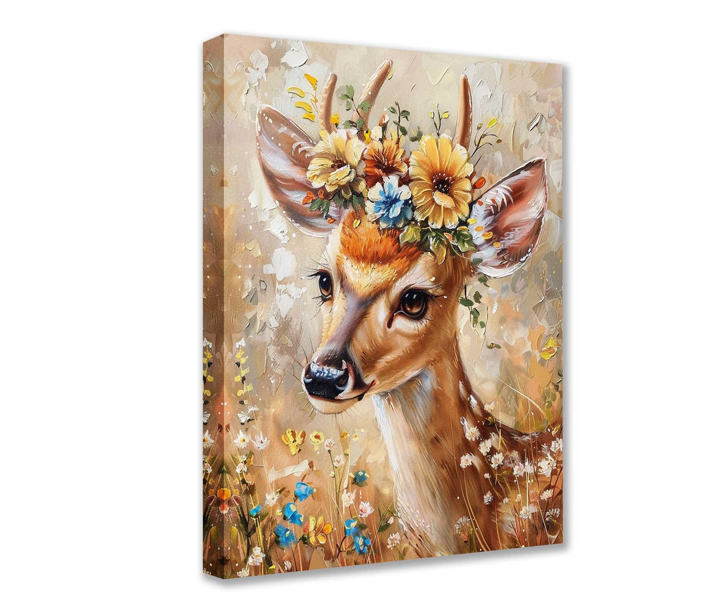 Leinwandbild Anmutiger Hirsch mit Blumenkrone