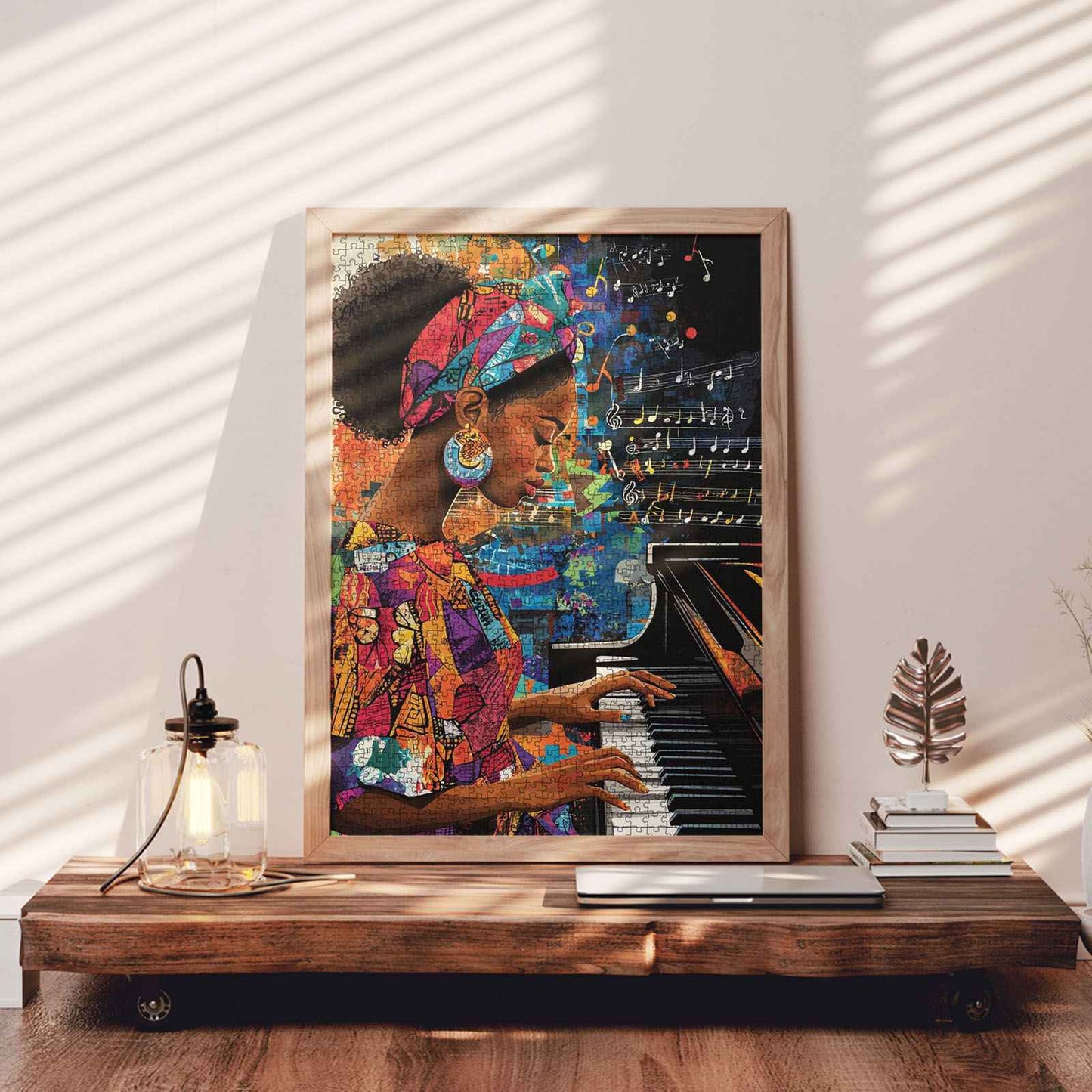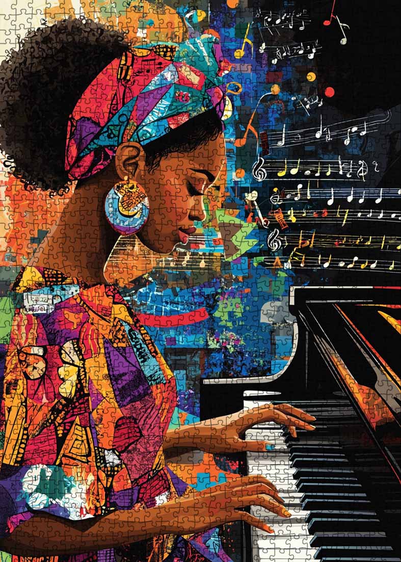 Verlieren Sie sich im gefühlvollen Rhythmus dieses atemberaubenden Puzzles mit einer selbstbewussten Pianistin, die in ihre Melodie versunken ist. In lebendige Muster gekleidet, erweckt sie Musik zum Leben, während ihre Finger mühelos über die Tasten gleiten. Dieses Puzzle ist eine perfekte Mischung aus Kunstfertigkeit und Emotion und eine Hommage an die Kraft des Klangs und des Selbstausdrucks.
