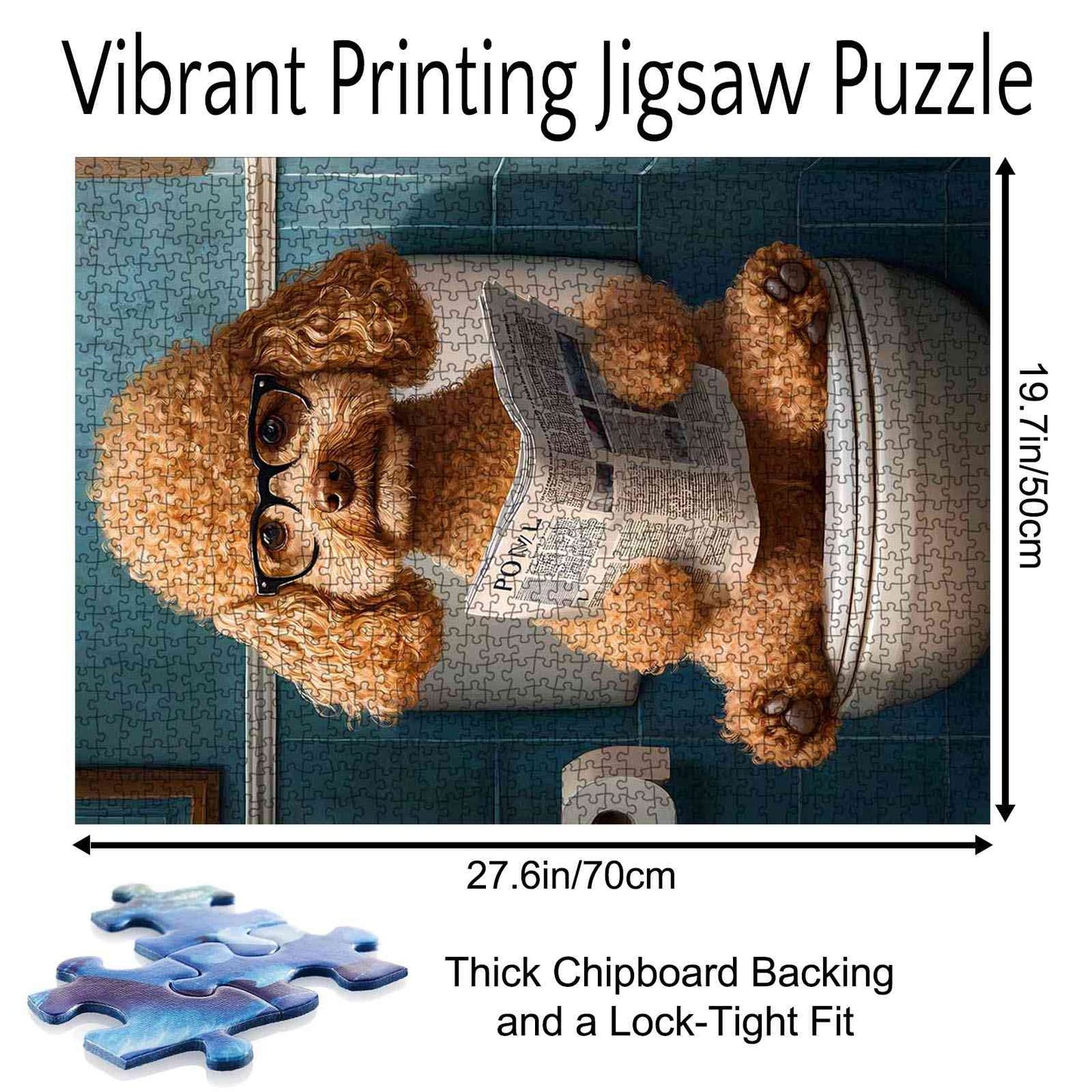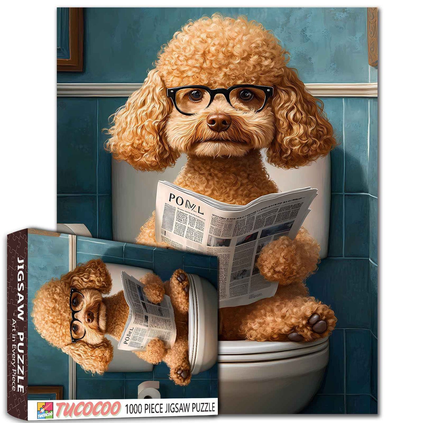 Tauchen Sie ein in unser Puzzle „Lesender Pudel“, das einen charmanten Pudel zeigt, der gemütlich auf einer Toilette Zeitung liest. Dieses 500-teilige Puzzle fängt eine humorvolle Szene ein, die Puzzle-Enthusiasten und Tierliebhaber gleichermaßen begeistern wird. Es bietet eine reizvolle Herausforderung und ein einzigartiges Stück für Ihre Sammlung.