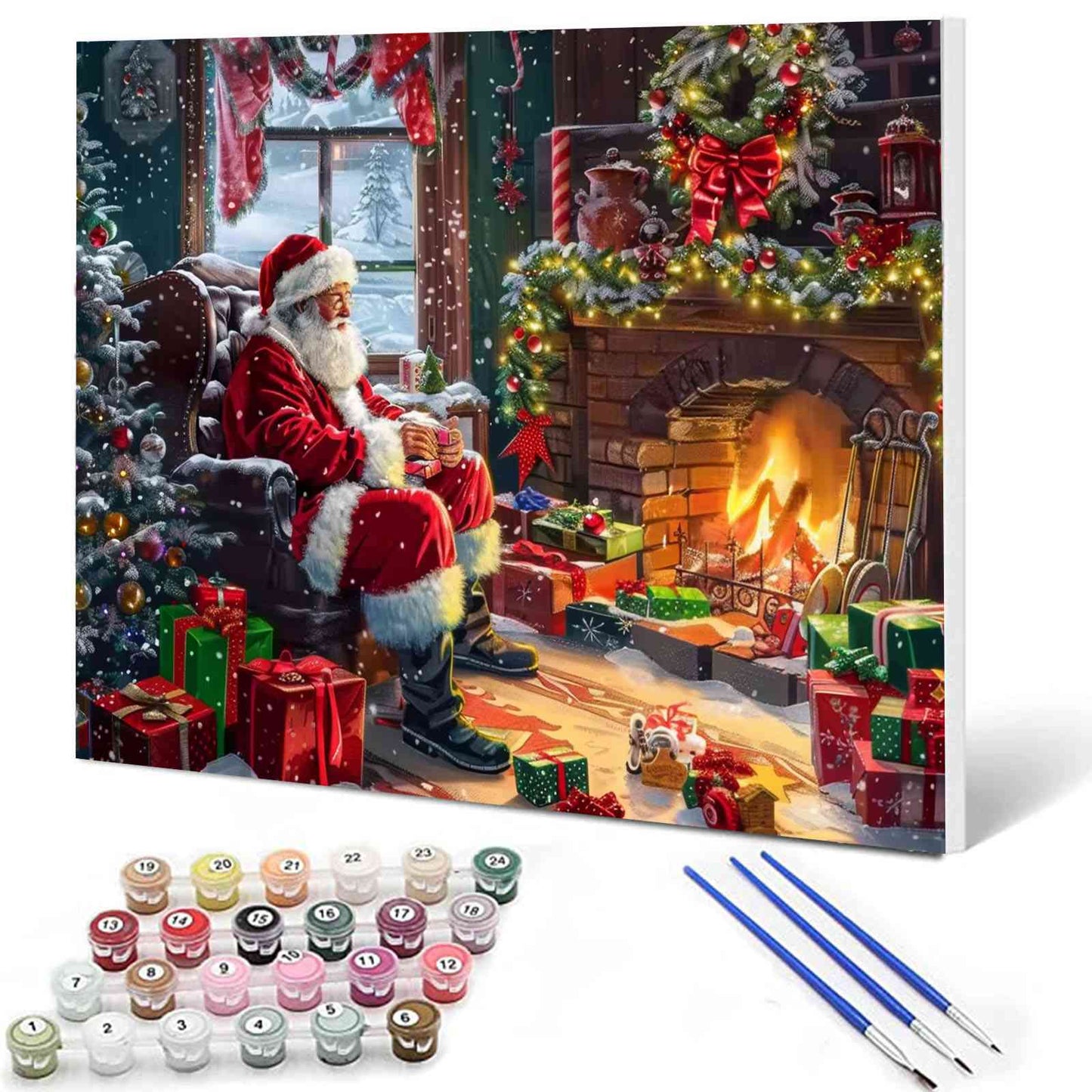 Weihnachtsmann am Kamin – Malen nach Zahlen