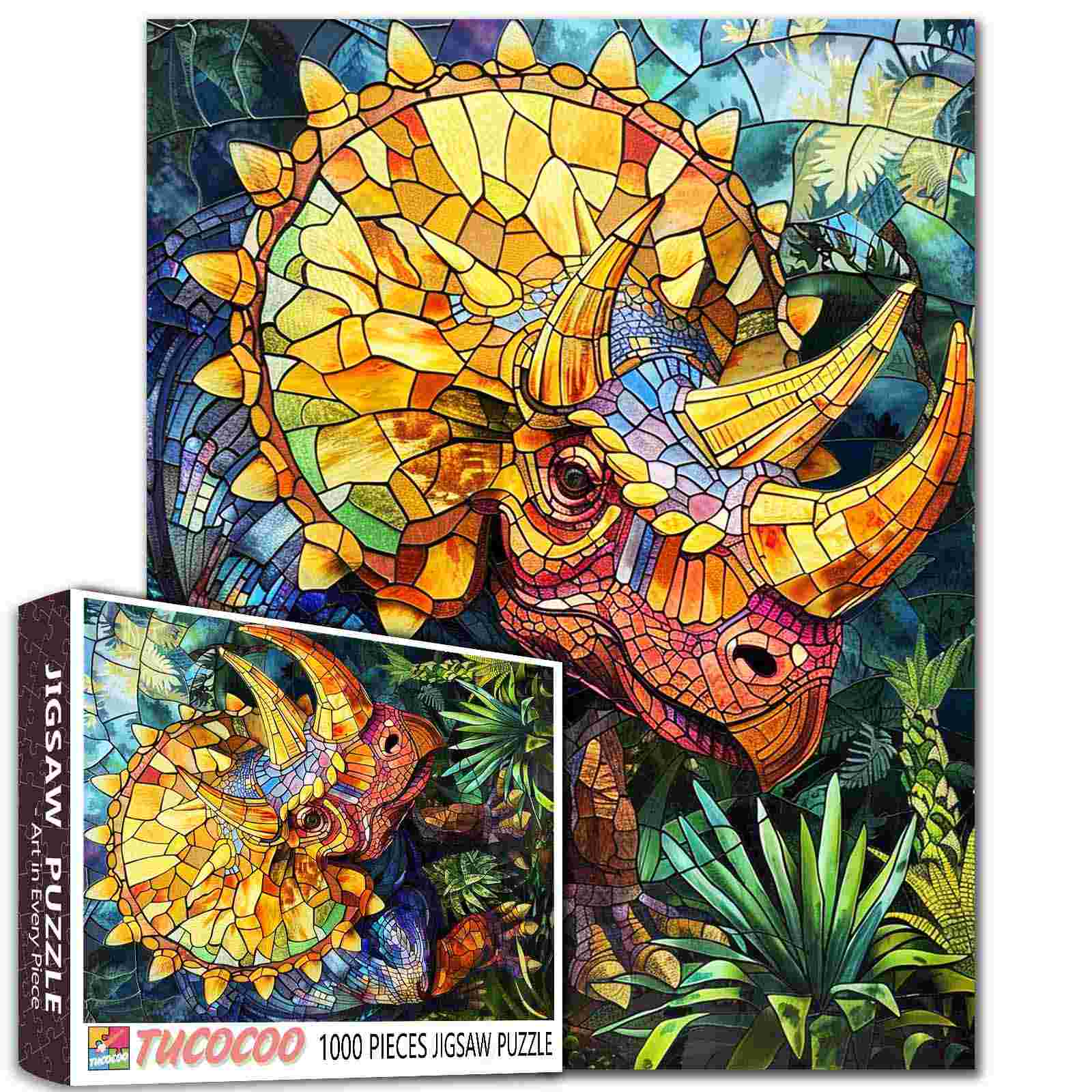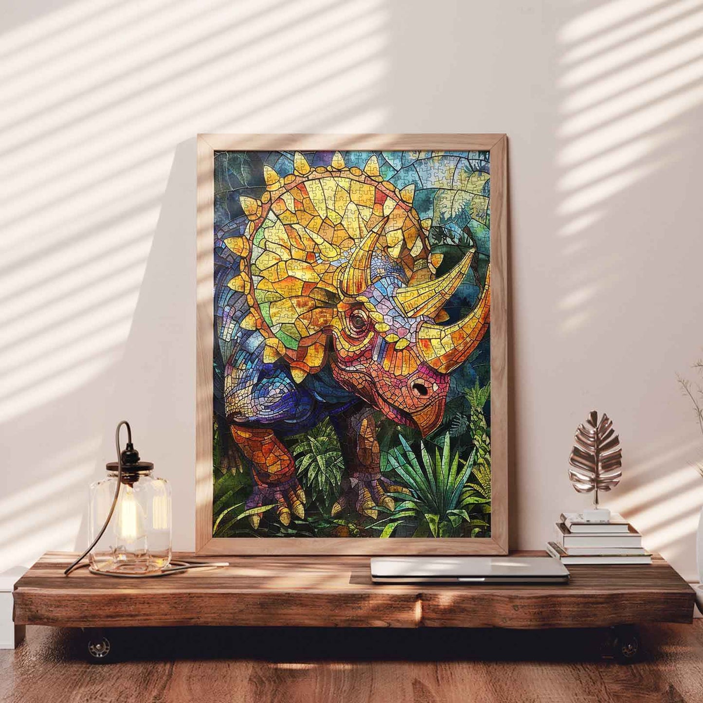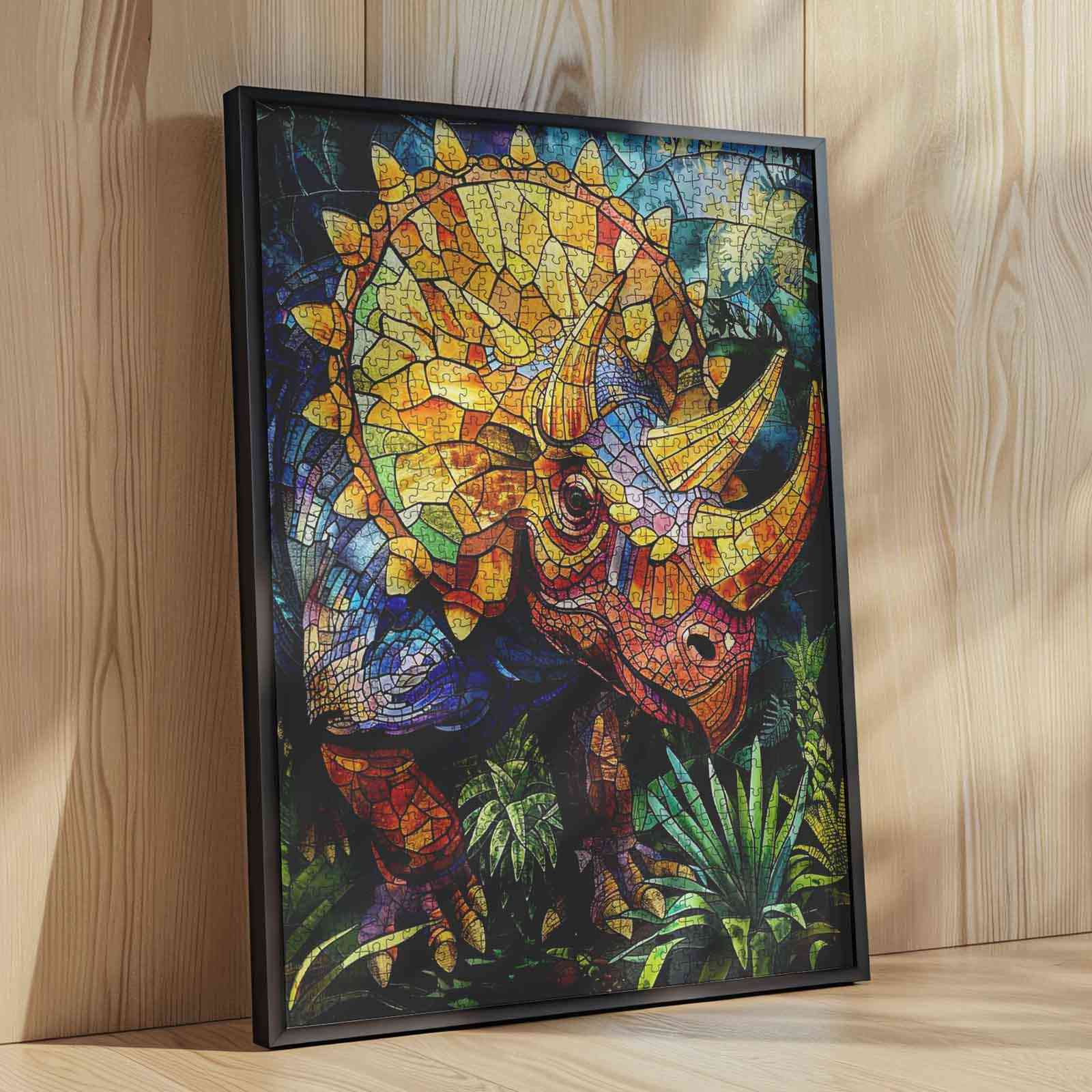 Triceratops-Dinosaurier-Buntglas-Puzzle