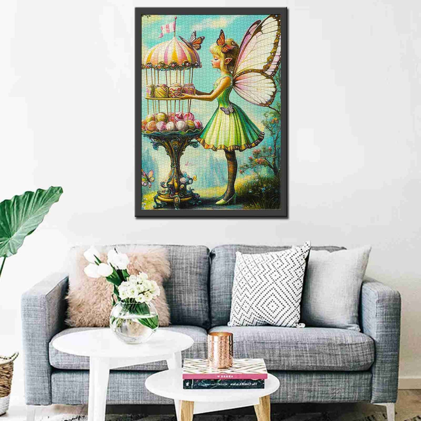 Immerse yourself in a world of whimsy with our Enchanted Treats Fairy Puzzle. This charming puzzle features a fairy delicately balancing a carousel of sweet treats, surrounded by vibrant butterflies. Perfect for those who love a touch of magic and joy in their puzzle-solving experience.