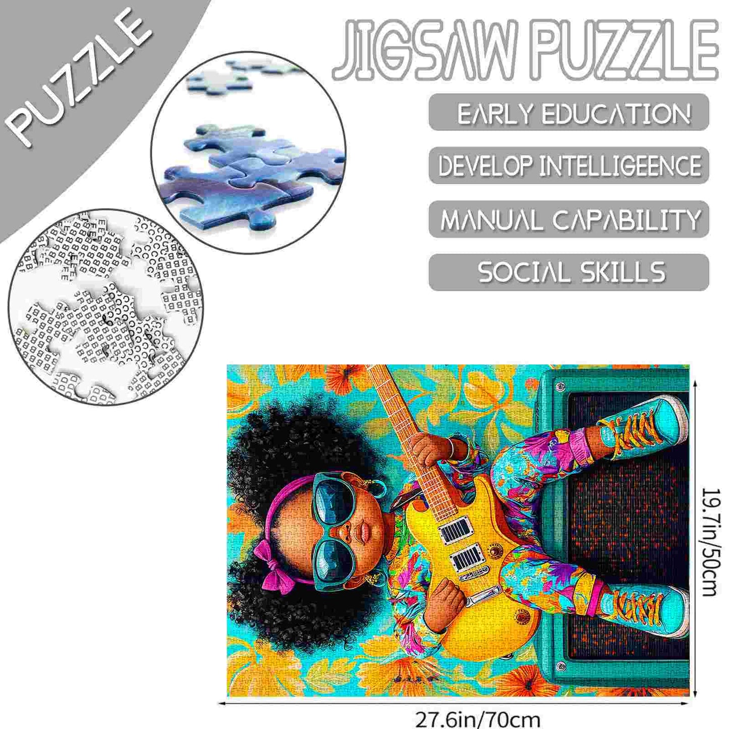 Let the music inspire you as you piece together this vibrant Groovy Girl Guitar Jigsaw Puzzle. With bold colors and a cheerful vibe, this puzzle celebrates creativity and rhythm, bringing joy to puzzlers of all ages. Perfect for music enthusiasts and puzzle lovers alike, this unique design promises hours of engaging fun.