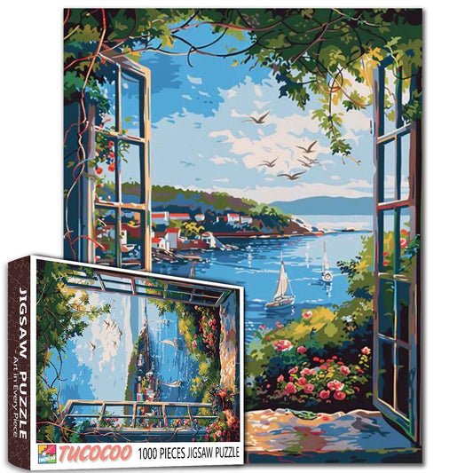 Sunlit Garden Terrace with Blue Pottery Jigsaw Puzzle