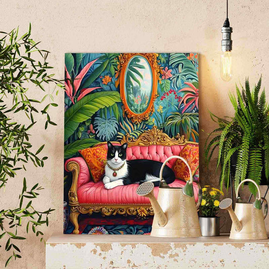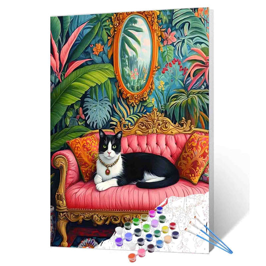 Chat noir mignon assis sur un canapé Peinture par numéros