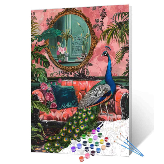 Peinture par numéros d'une vache exotique assise sur une chaise