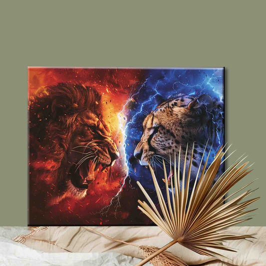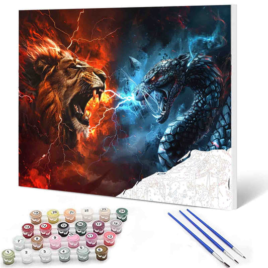 Peinture par numéros d'une famille de lions colorés