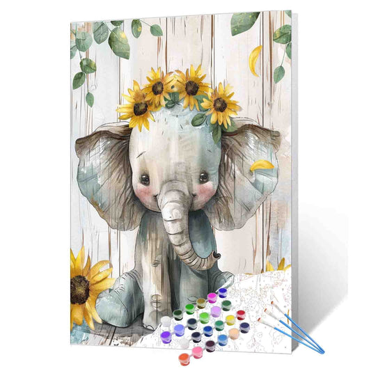 Peinture par numéros : Porcinet avec couronne de fleurs dans une baignoire