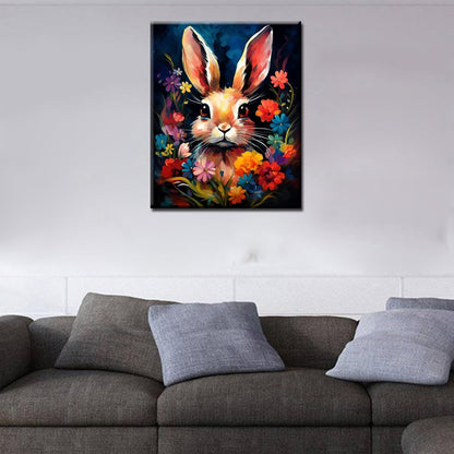 Peinture par numéros d'un lapin abstrait parmi les fleurs
