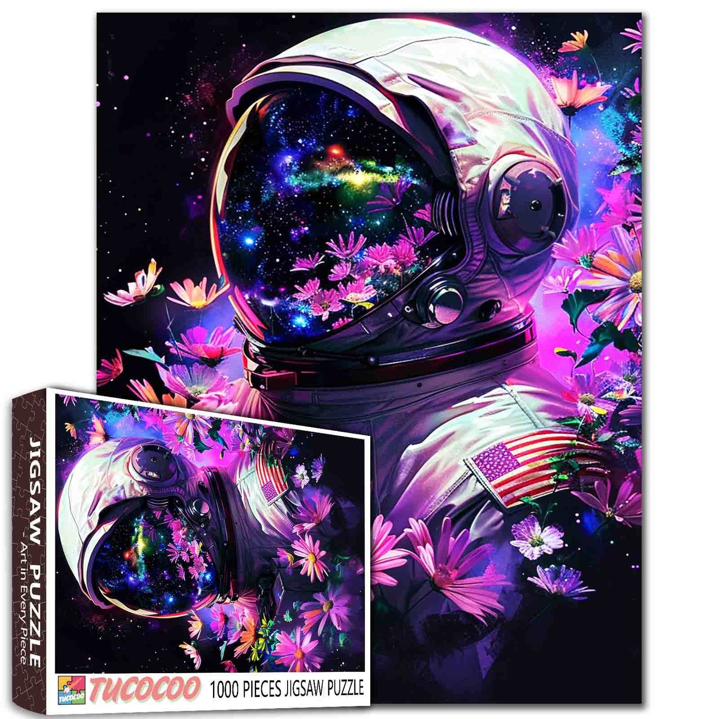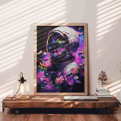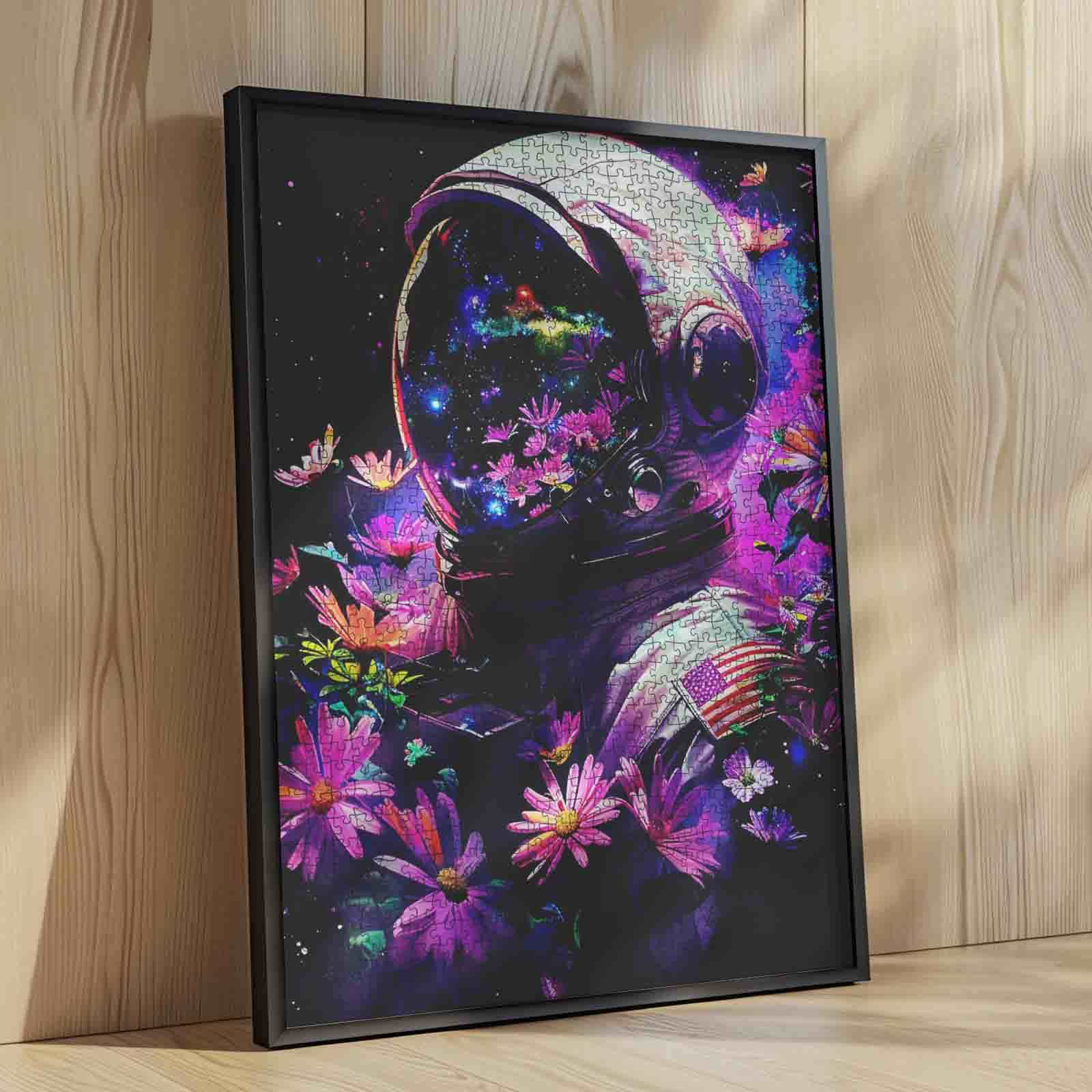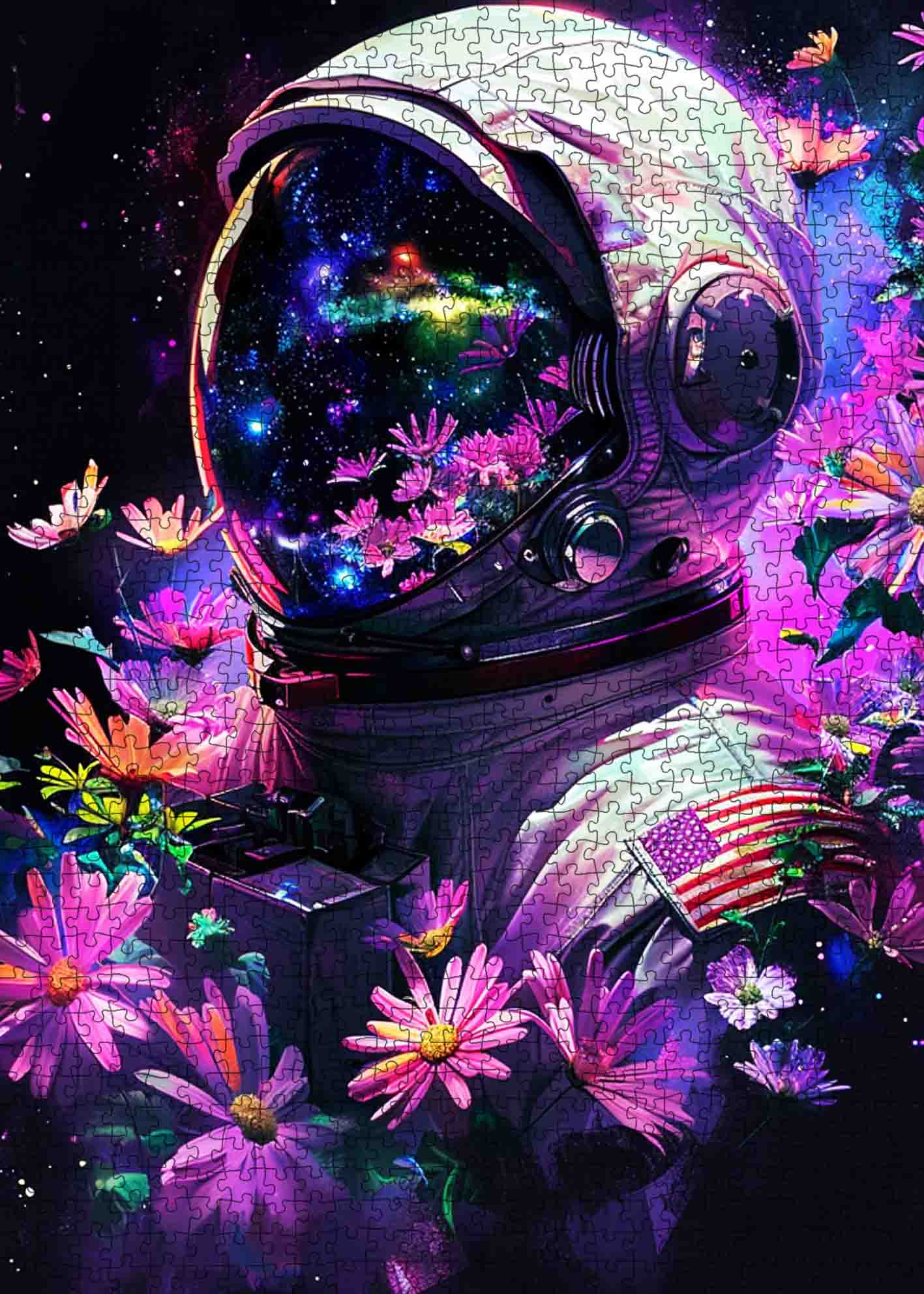 Puzzle d'un astronaute américain parmi les fleurs
