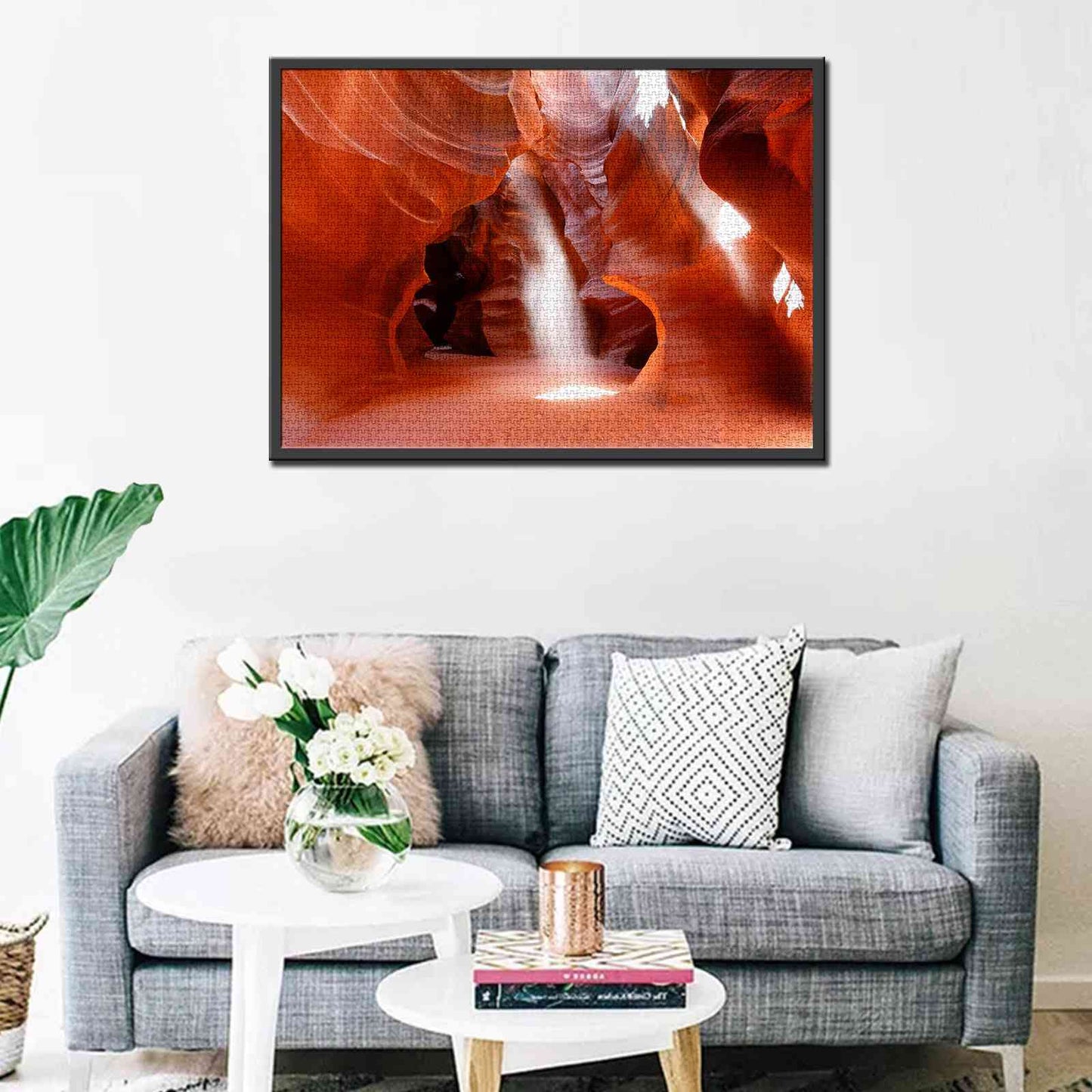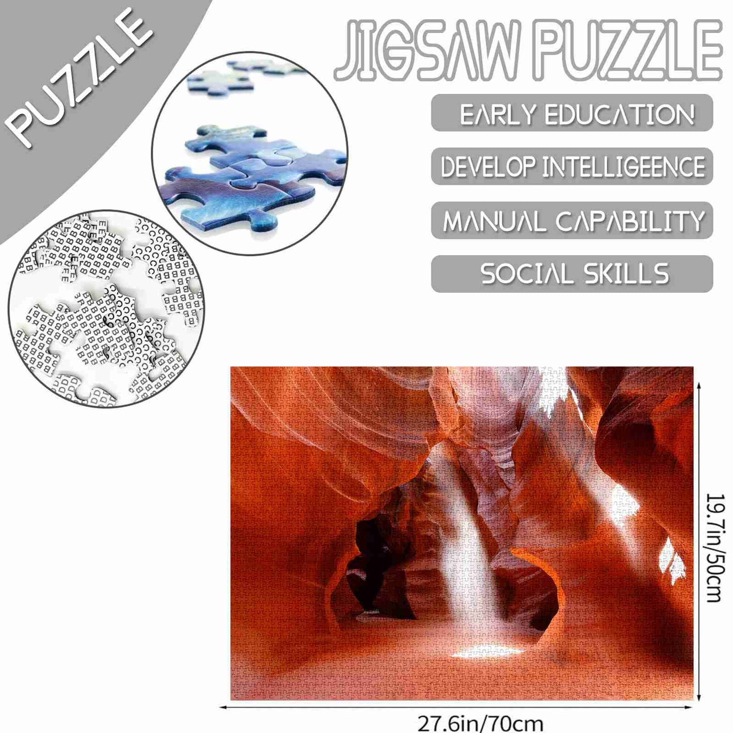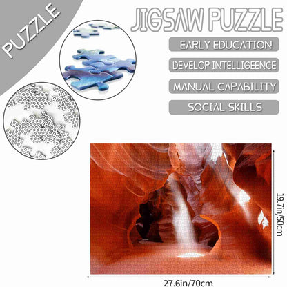 Explorez les profondeurs fascinantes d'Antelope Canyon avec ce superbe puzzle. Les formations de grès complexes, sculptées par des siècles de forces naturelles, sont illuminées par un faisceau de lumière rayonnante qui traverse le canyon. Les teintes chaudes de rouge et d'orange contrastent magnifiquement avec la douce lueur, créant une scène à couper le souffle qui met en valeur l'art intemporel de la nature.