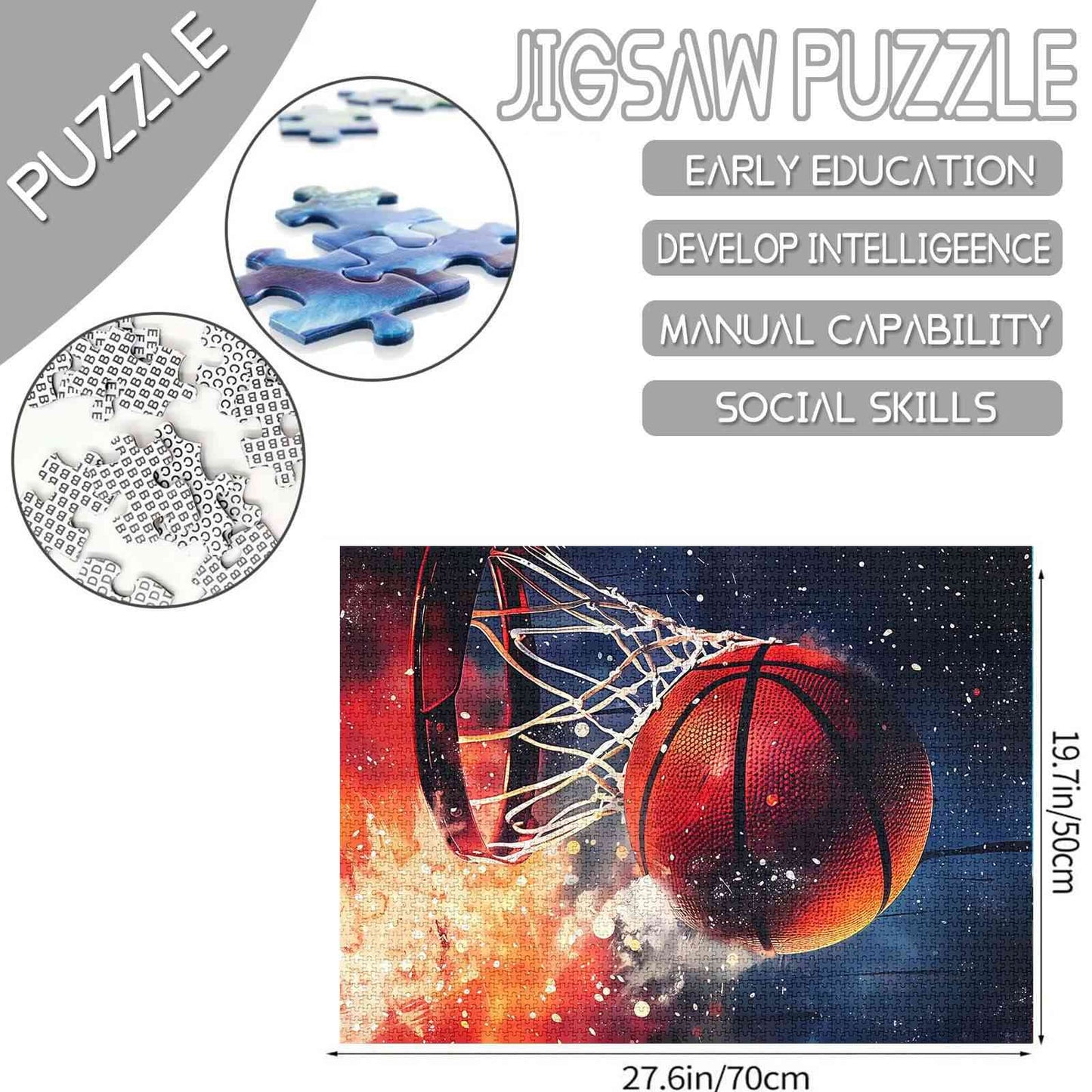 Vivez le frisson du jeu avec ce puzzle dynamique de 1000 pièces. Un ballon de basket capturé à mi-dunk avec une énergie et des détails vibrants apporte de l'excitation à chaque pièce. Parfait pour les fans de sport et les amateurs de puzzles, c'est un slam dunk pour votre collection !