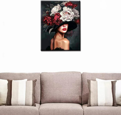 Belle femme avec un chapeau de fleurs Peinture par numéros