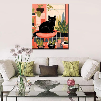 Peinture par numéros Chat noir à côté de l'évier