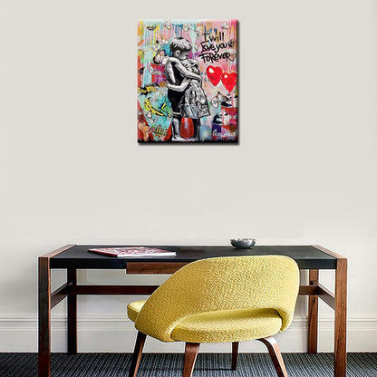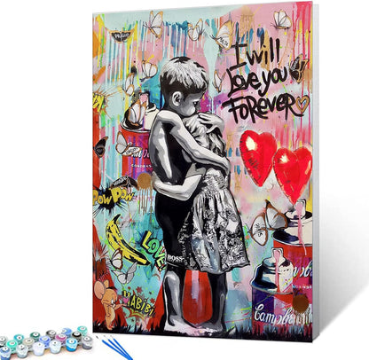 Peinture par numéros de graffitis représentant un câlin entre frère et sœur