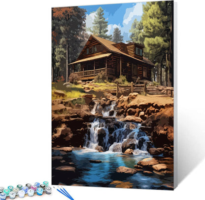 Donnez vie au charme rustique d'une cabane en rondins nichée dans la forêt avec ce kit de peinture par numéros. Située au milieu de pins imposants, la cabane surplombe une cascade et un ruisseau clair, créant une évasion sereine dans les bois. Idéal pour les artistes de tous niveaux, ce kit offre un projet paisible qui capture la beauté de la nature.
