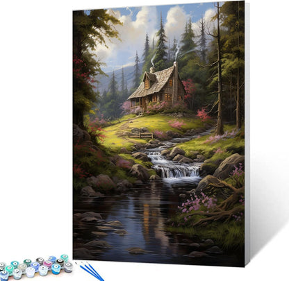Évadez-vous dans une retraite cachée dans les bois avec ce kit de peinture par numéros. Une cabane confortable est nichée sur une douce colline, entourée de fleurs vibrantes et de grands arbres, avec un ruisseau serein qui coule à proximité. Idéal pour les artistes de tous niveaux, ce kit capture la beauté paisible de la nature, parfait pour ajouter de la tranquillité à n'importe quelle pièce.