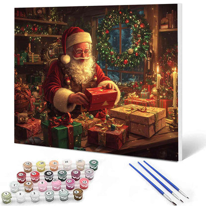 Donnez vie à la magie de Noël avec ce kit de peinture par numéros réconfortant ! Il met en scène le Père Noël dans son atelier, emballant soigneusement des cadeaux pour tous les petits garçons et petites filles sages. Avec des détails festifs comme des lumières scintillantes et une couronne de Noël, ce kit apportera joie et gaieté à votre période des fêtes. Peignez votre propre chef-d'œuvre et créez un souvenir mémorable !