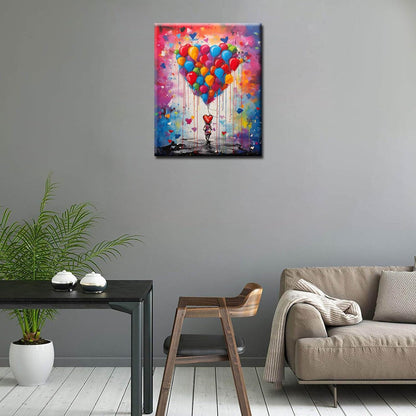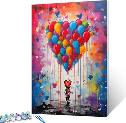 Ballons colorés dans le rêve d'une petite fille - Peinture par numéros