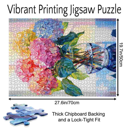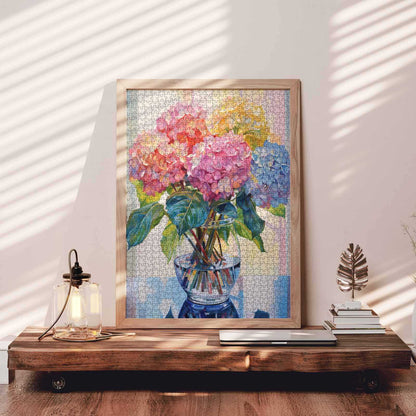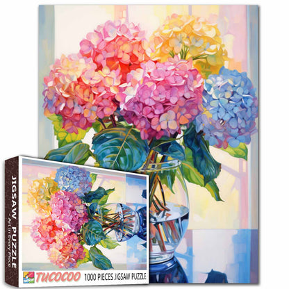 Relevez le défi avec ce magnifique puzzle de 1000 pièces représentant un bouquet vibrant d'hortensias dans un vase. Les détails complexes des fleurs et du vase en verre offriront des heures de divertissement et de détente. Ce puzzle est parfait pour les adultes et constitue un excellent moyen de se détendre après une longue journée. Il constitue également un excellent cadeau pour tout amateur de puzzle.