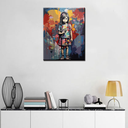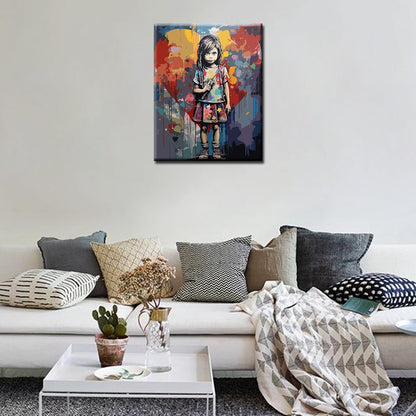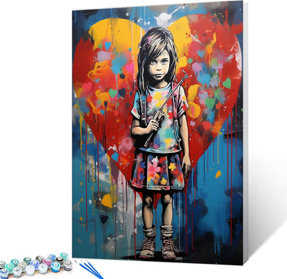 Peinture par numéros représentant une jolie petite fille et un cœur graffiti